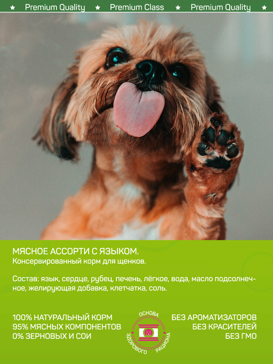 Влажный корм для щенков Четвероногий Гурман Мясное ассорти с языком 01 кг