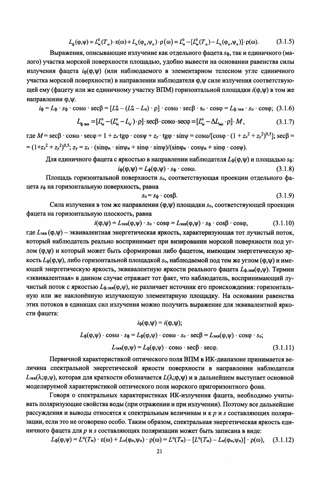 На основе теории рассеяния электромагнитных волн на статистически неровных поверхностях и с использованием фацетной стохастической модели взволнованного моря разработаны инженерные методики расчетов спектральных и поляризационных характеристик оптического излучения морского фона, антропогенных объектов и природных образований. Приведены статистически обеспеченные данные натурных измерений, полученные в разные сезоны года и на разных акваториях.