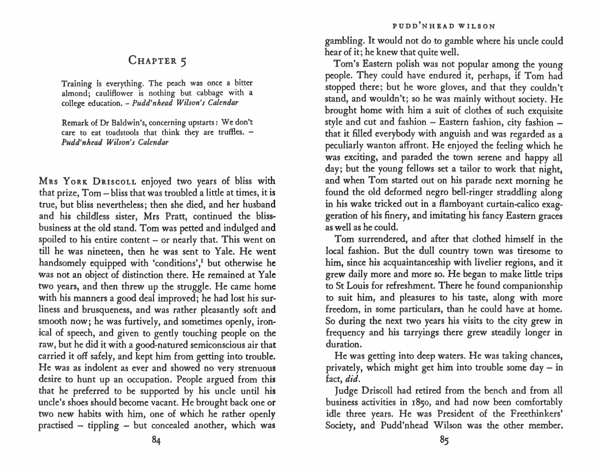 Determined that her baby son Tom shall not share her fate and remain in slavery, Roxy secretly exchanges him with his playmate Chambers, the son of her master. The two boys' lives in the quiet Missouri town of Dawson's Landing remain entwined even though they take very different directions. The indulged Tom (now heir to a fortune rightfully that of Chambers) goes to Yale, where he learns how to drink and gamble, while Chambers looks set to remain a subservient drudge. But then a strange sequence of events begins - one in which the much-derided lawyer, 'Pudd'nhead' Wilson, has a key part to play - and changes everything. Darkly ironic, blending farce and tragedy, Pudd'nhead Wilson is a complex and fascinating depiction of human nature under slavery.