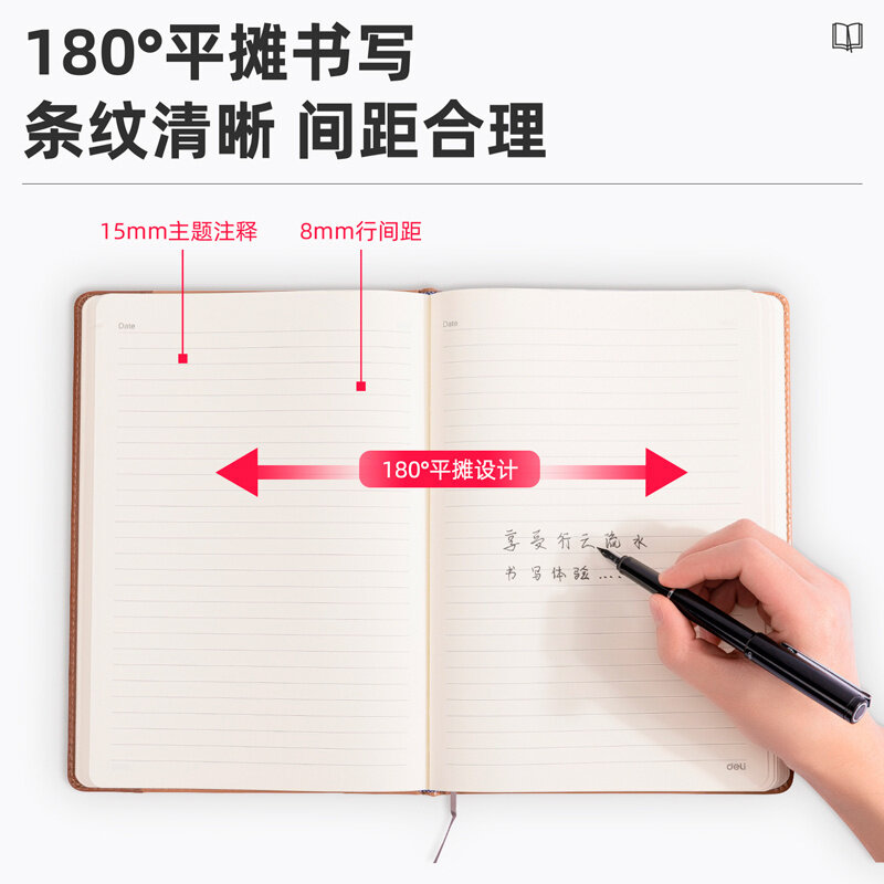Блокнот официальный Deli с закладкой. Выполнен в классическом коричневом стиле, имеет обложку из искусственной кожи с приятной фактурой, надежный прошитый переплет. В ежедневнике 160 листов качественной плотной бумаги светло-кремового цвета. Бумага сделана без добавления кислот, что гарантирует сохранение яркости цвета на долгие годы.