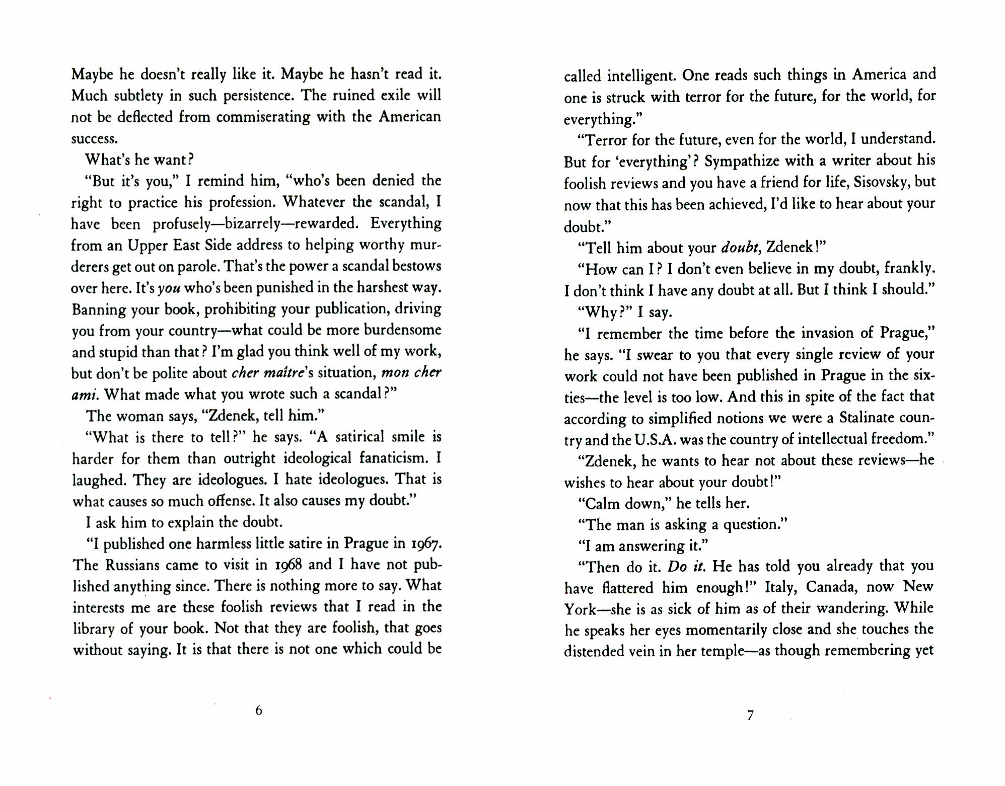 The Prague Orgy, consisting of entries from Zuckerman's notebooks recording his sojourn among these outcast artists, completes the trilogy and epilogue Zuckerman Bound. It provides a startling ending to Roth's intricately designed magnum opus on the unforeseen consequences of art.