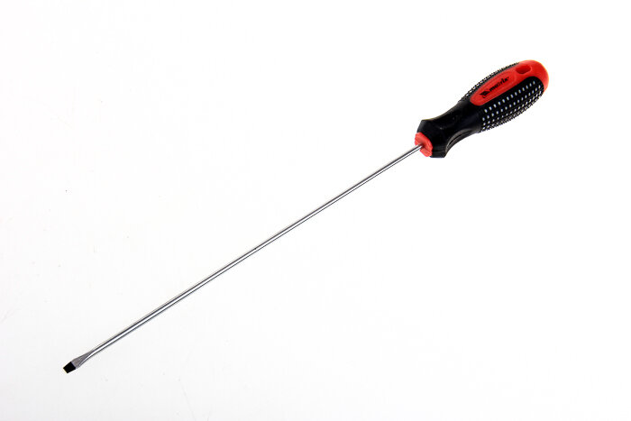 - Стержень и жало выполнены из износостойкой легированной стали CrV твердостью 50-52 HRC, что обеспечивает долгий срок службы отвертки