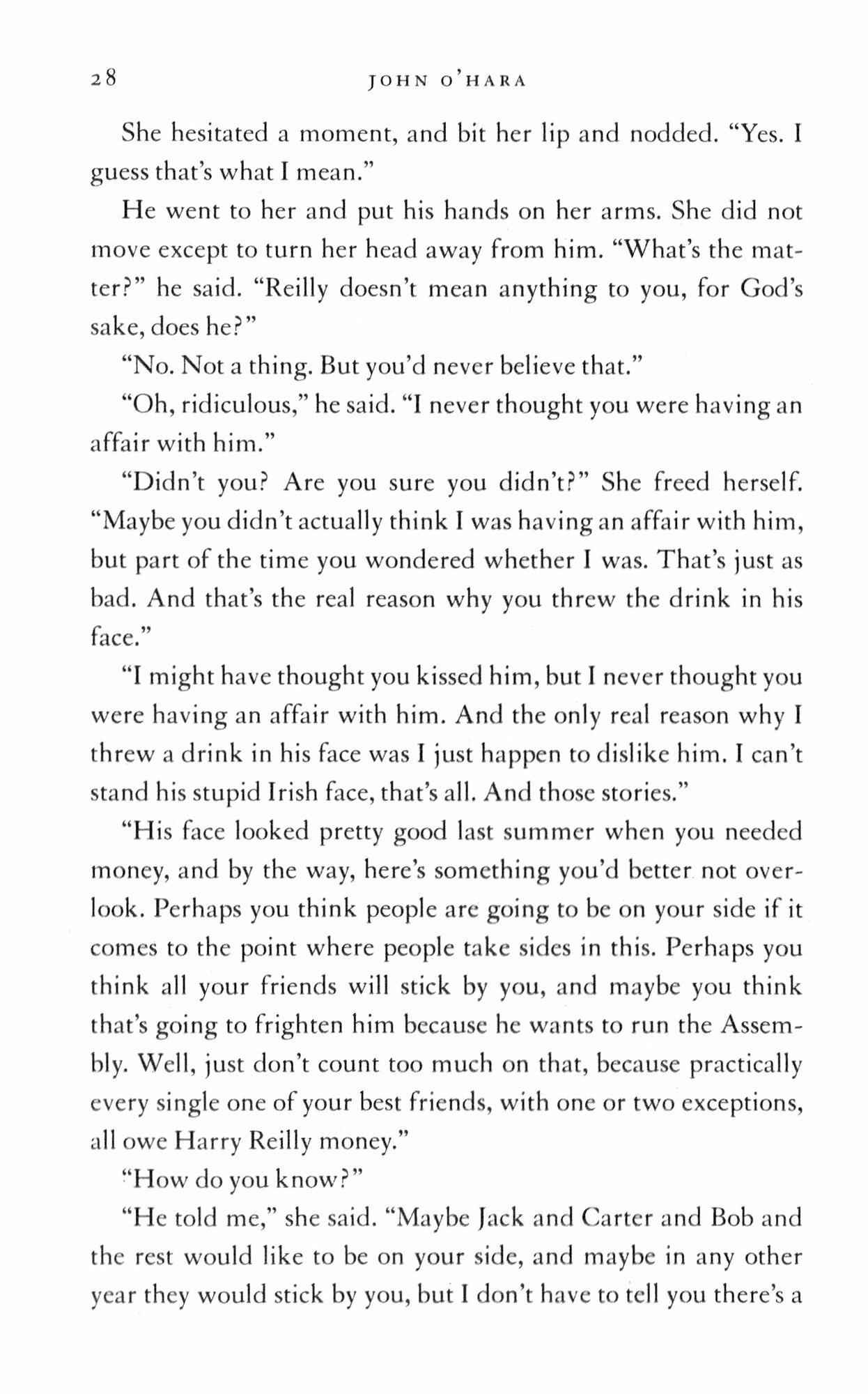 Julian English prides himself a member of his hometown’s social elite, but from the moment he throws a cocktail in the face of a powerful business associate his life spirals out of control, taking his loving but troubled marriage with it.