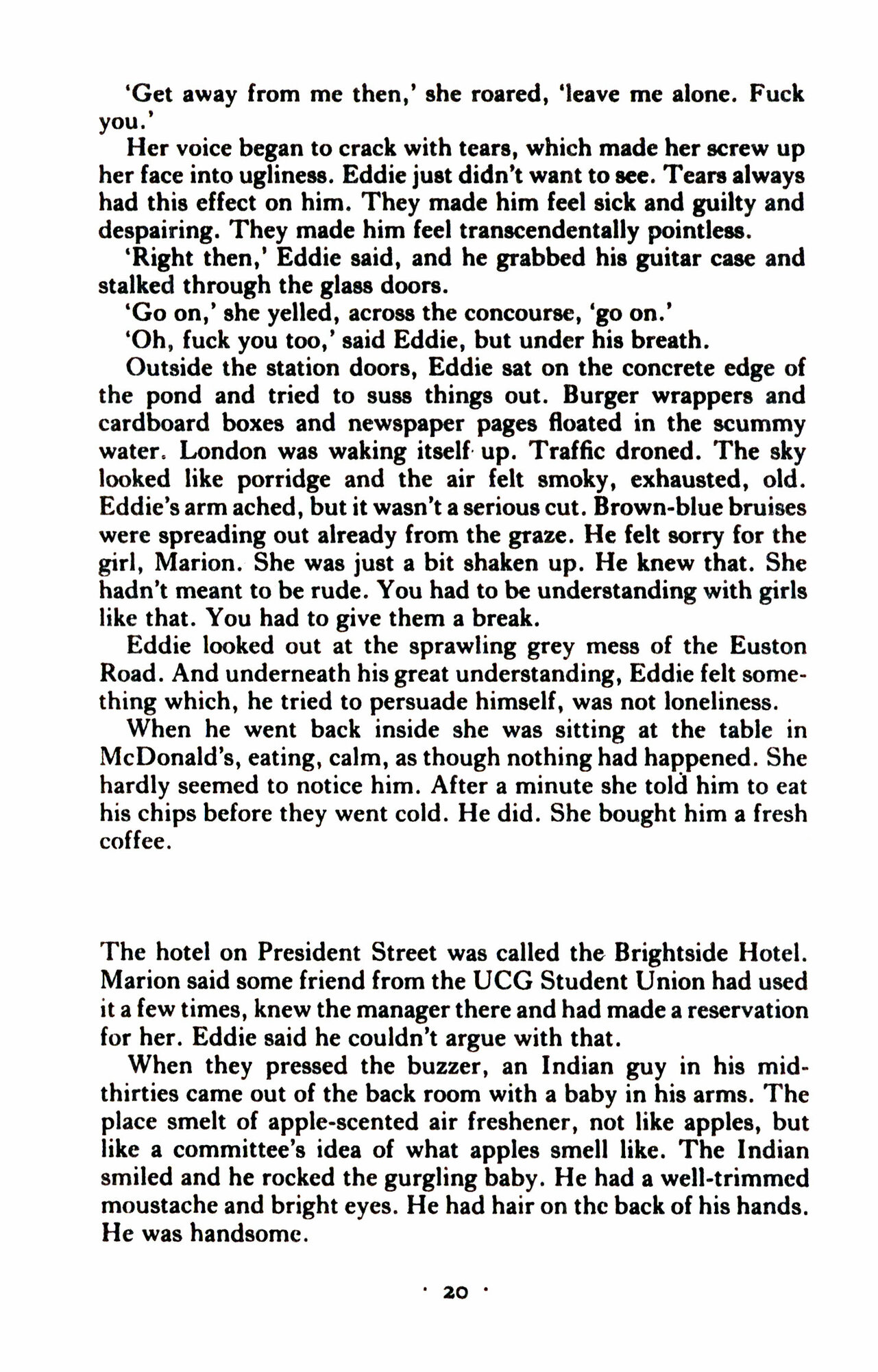 Things don't quite go as planned, however. He finds himself living in a ramshackle hotel with a girl he met on the ferry over, while a bewildering array of acid-house ravers, saloon-bar revolutionaries, music-business wideboys and media primadonnas all seem very anxious to help Eddie on his way...