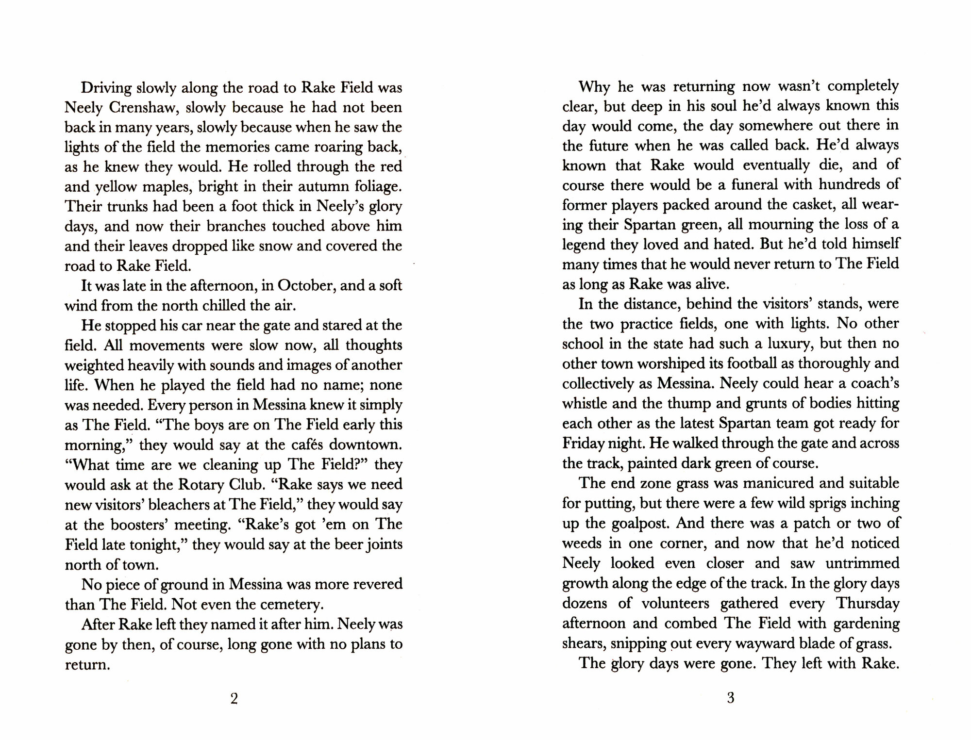 Neely Crenshaw was the best quarterback ever to play for legendary high school football team, the Messina Spartans. But fifteen years later, with his glory days far behind, the man everyone remembers is Coach Eddie Rake.