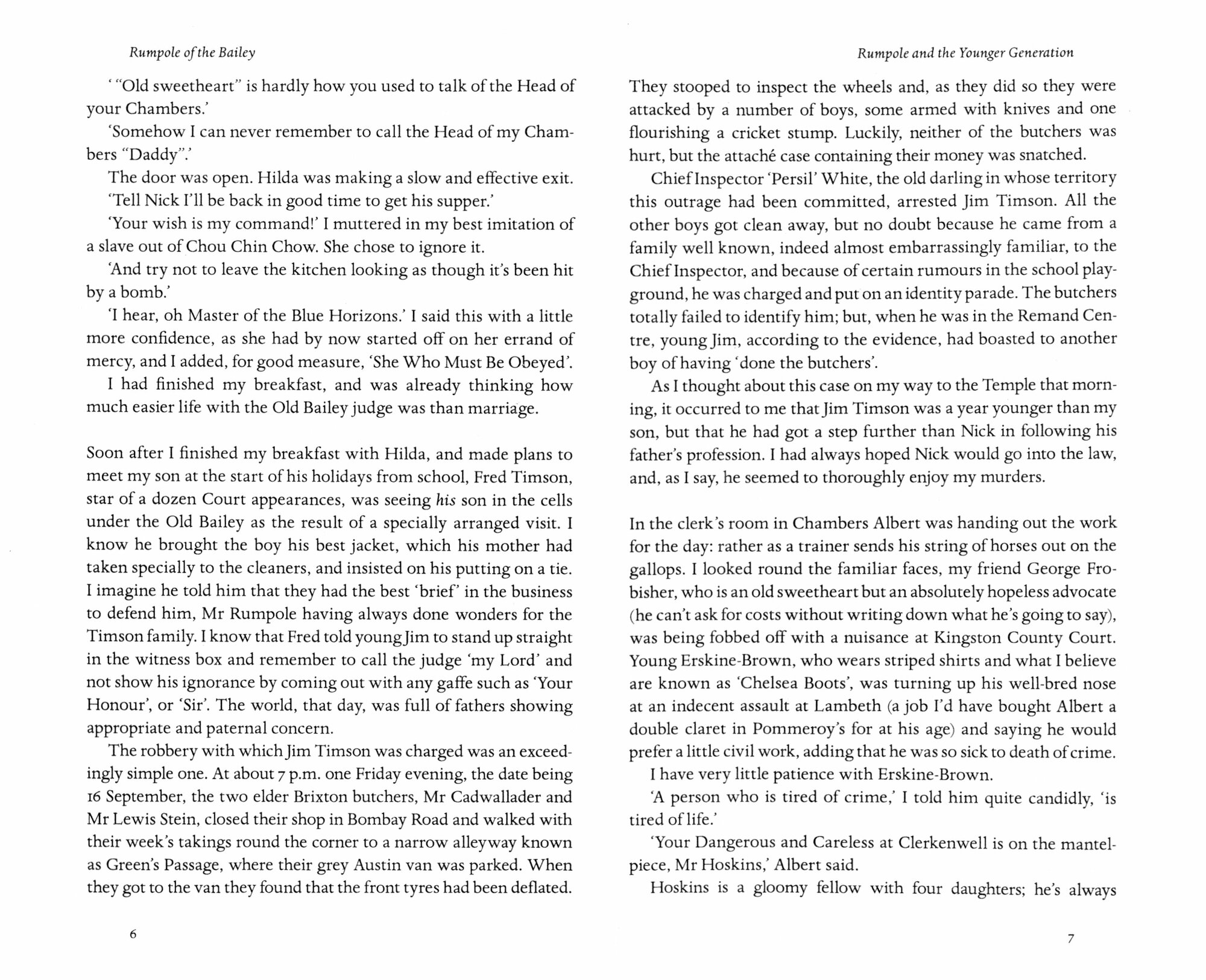 Horace Rumpole - dishevelled barrister at law, drinker of claret and smoker of cigars, inveterate quoter of Wordsworth and eternal defender of the underdog - is one of the greatest English comic characters ever created. This is the original volume of Rumpole stories, introducing us to the legal triumphs that first made the Old Bailey Hack's name, along with a host of choice villains, frequent forays to Pommeroy's wine bar and, of course, his formidable, magisterial wife Hilda, She Who Must Be Obeyed.