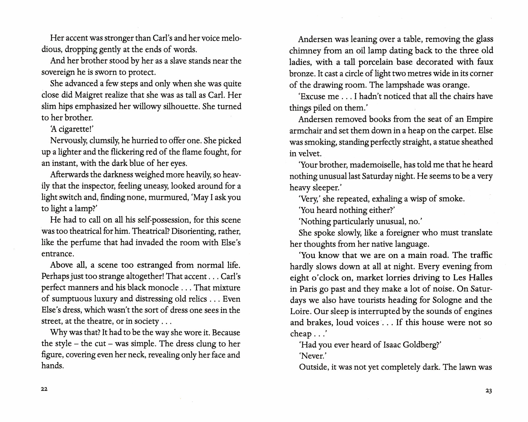 Maigret has been interrogating Carl Andersen for seventeen hours without a confession. He's either innocent or a very good liar. So why was the body of a diamond merchant found at his isolated mansion? Why is his sister always shut away in her room? And why does everyone at Three Widows Crossroads have something to hide?