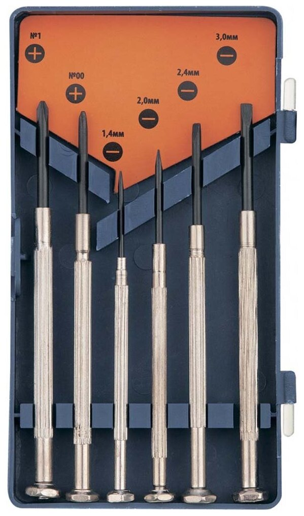 | Комплект поставки | отвертка SL 1.4 - 1 шт, отвертка PH 0 - 1 шт, отвертка PH 0.0 - 1 шт, отвертка SL 3.0 - 1 шт, отвертка SL 2.4 - 1 шт, отвертка SL 2.0 - 1 шт |