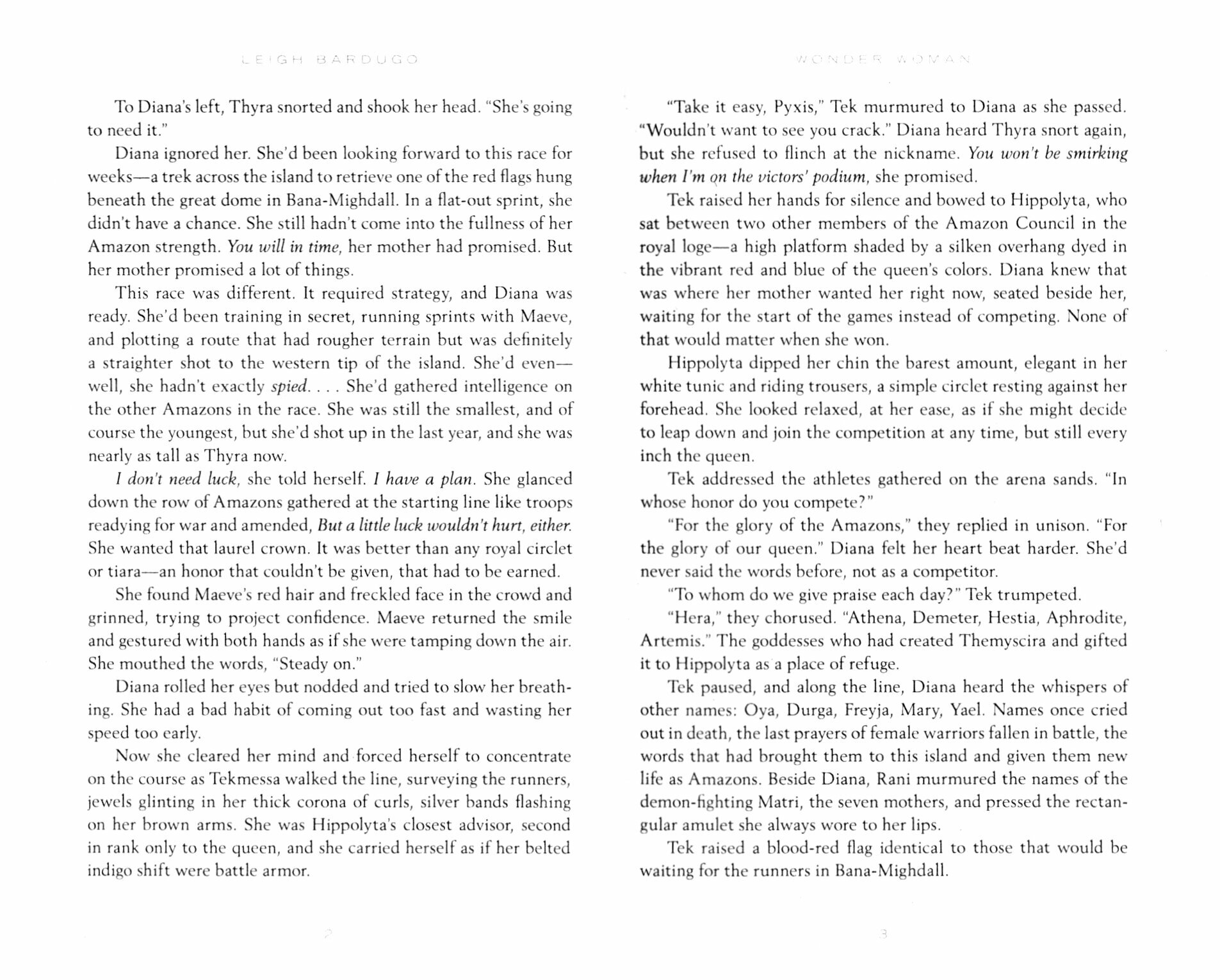 Супергероика Бардуго далась хорошо. Пожалуй, ей повезло с героиней: за вычетом отдельных элементов мифоса Бэтмена и некоторых других героев (а также комиксов импринта Vertigo), Чудо-женщина, пожалуй, ближе всего к её предыдущим книгам, и у писательницы отлично получается обыграть мифологические элементы, без которых историю Дианы невозможно представить. Правда, местные амазонки больше похожи на каких-нибудь валькирий, но данному роману это только идёт на пользу. Получился типичный для янг эдалта, но очень хорошо (по крайней мере, на мой вкус) исполненный сюжет о поиске своего места под солнцем и утрате юношеской наивности, застилающей взор и не дающей понять, сколь жестокой подчас бывает жизнь. И, разумеется, о драках и коварных планах.