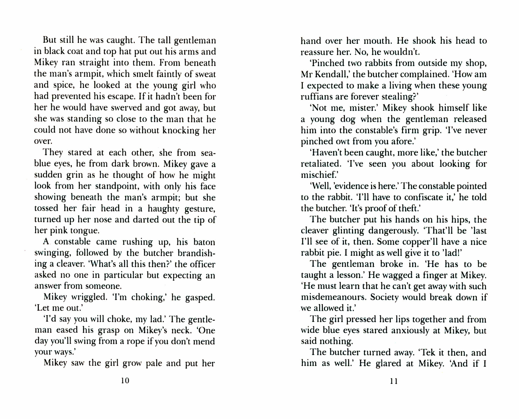 At only thirteen, Mikey Quinn is arrested for stealing a rabbit to feed his family. Despite his age, he’s shown no mercy by the wealthy lawyer who sends him to prison. He returns home to find that his mother has died and his younger siblings taken into the workhouse.