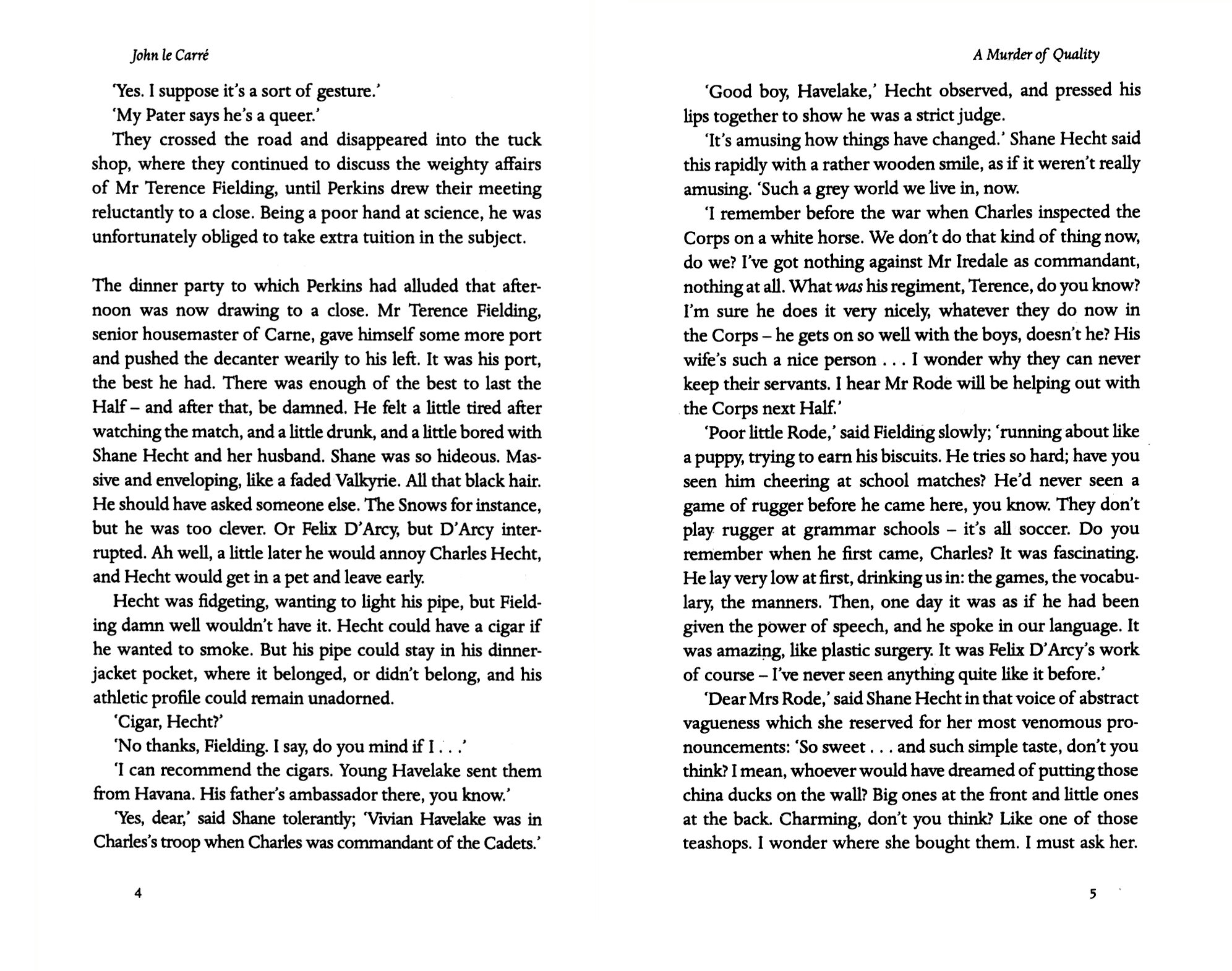 Stella Rode has twice disturbed the ancient cloisters of Carne School: firstly by being the wrong sort, with her doilies and china ducks, and secondly by being murdered. George Smiley, who has his own connection with the school, is asked by an old Service friend to investigate. Smiley knows that Stella feared her husband would murder her, but as he probes further beneath Carne's respectable veneer, he uncovers far more than a simple crime of passion. In his second novel, le Carre moves outside the world of espionage to reveal the secrets at the heart of another particularly English institution. The result is a pitch-perfect murder mystery, with George Smiley as master detective.