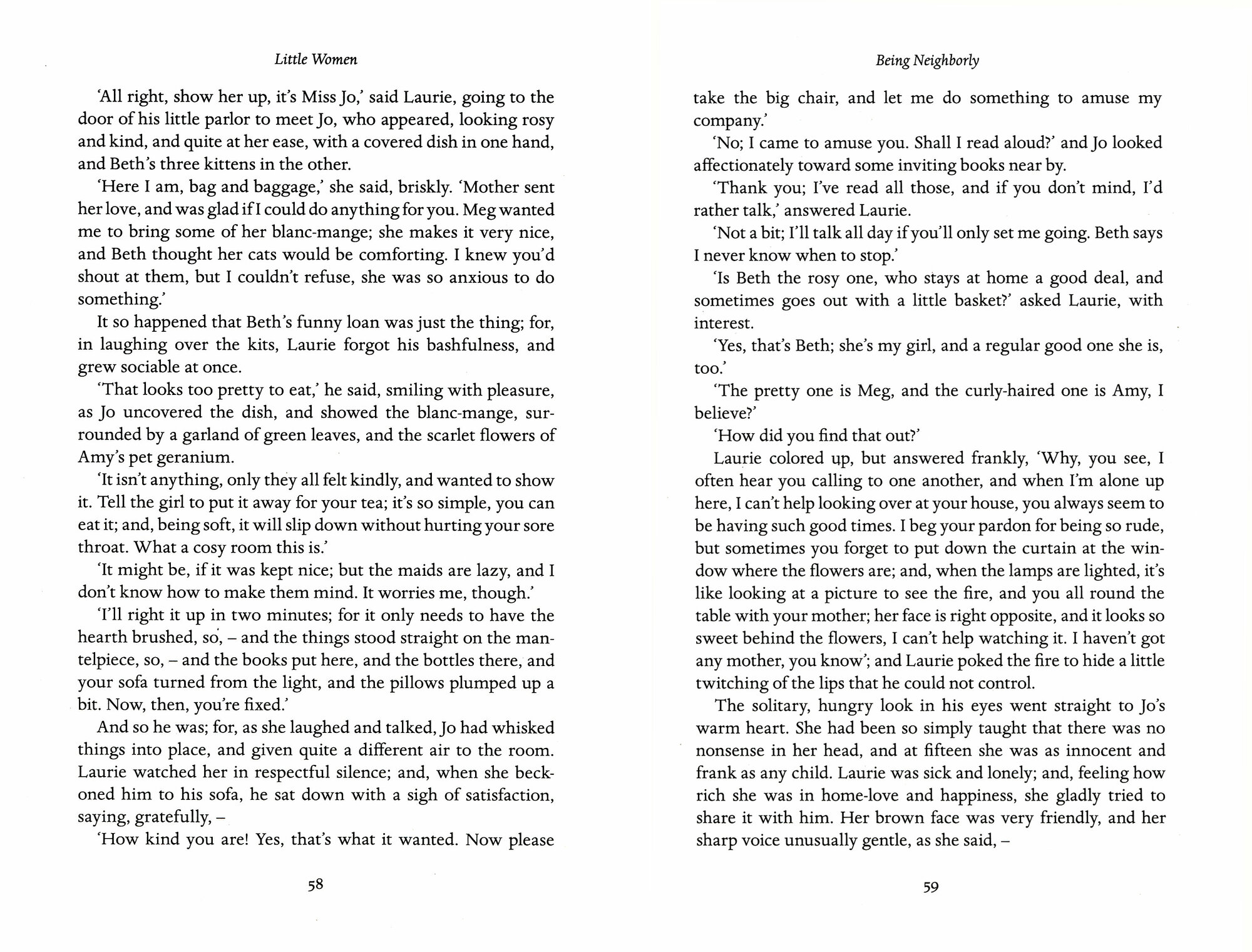 Meg, Jo, Amy and Beth - four "little women" enduring hardships and enjoying adventures in Civil War New England The charming story of the March sisters, Little Women has been adored by generations. Readers have rooted for Laurie in his pursuit of Jo's hand, cried over little Beth's death, and dreamed of travelling through Europe with old Aunt March and Amy. Future writers have found inspiration in Jo's devotion to her writing. In this simple, enthralling tale, both parts of which are included here, Louisa May Alcott has created four of American literature's most beloved women.