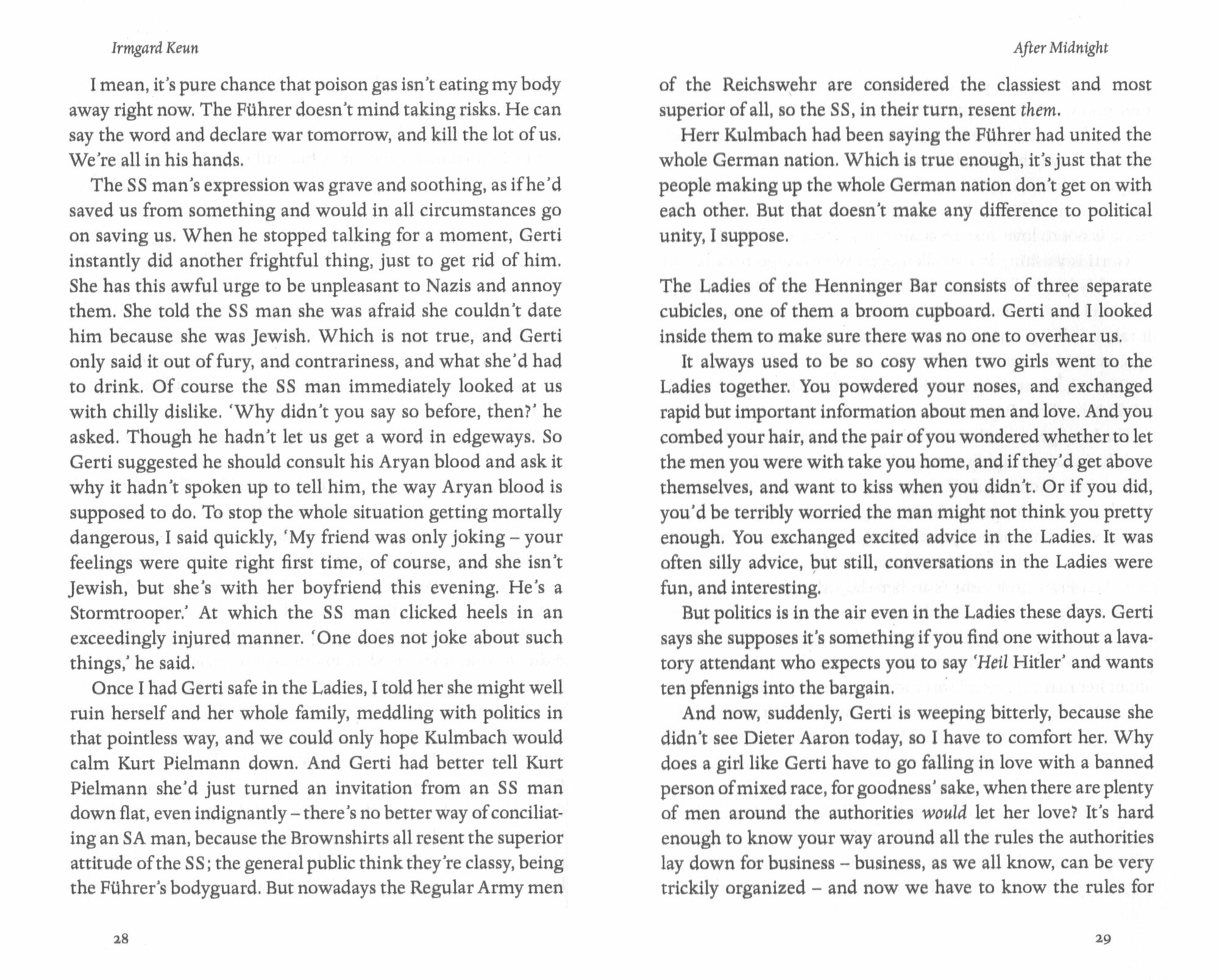 Nineteen-year-old Sanna just wants to drink her beer in peace, but that's difficult when Hitler has come to town and his motorcade is blocking the streets of Frankfurt. What's more, her best friend Gerti is in love with a Jewish boy, her brother writes books that have been blacklisted and her own aunt may denounce her to the authorities at any moment, as Germany teeters on the edge of the abyss. Written after she had fled the Nazi regime, Irmgard Keun's masterly novel captures the feverish hysteria and horror of the era with devastating perceptiveness and humour.