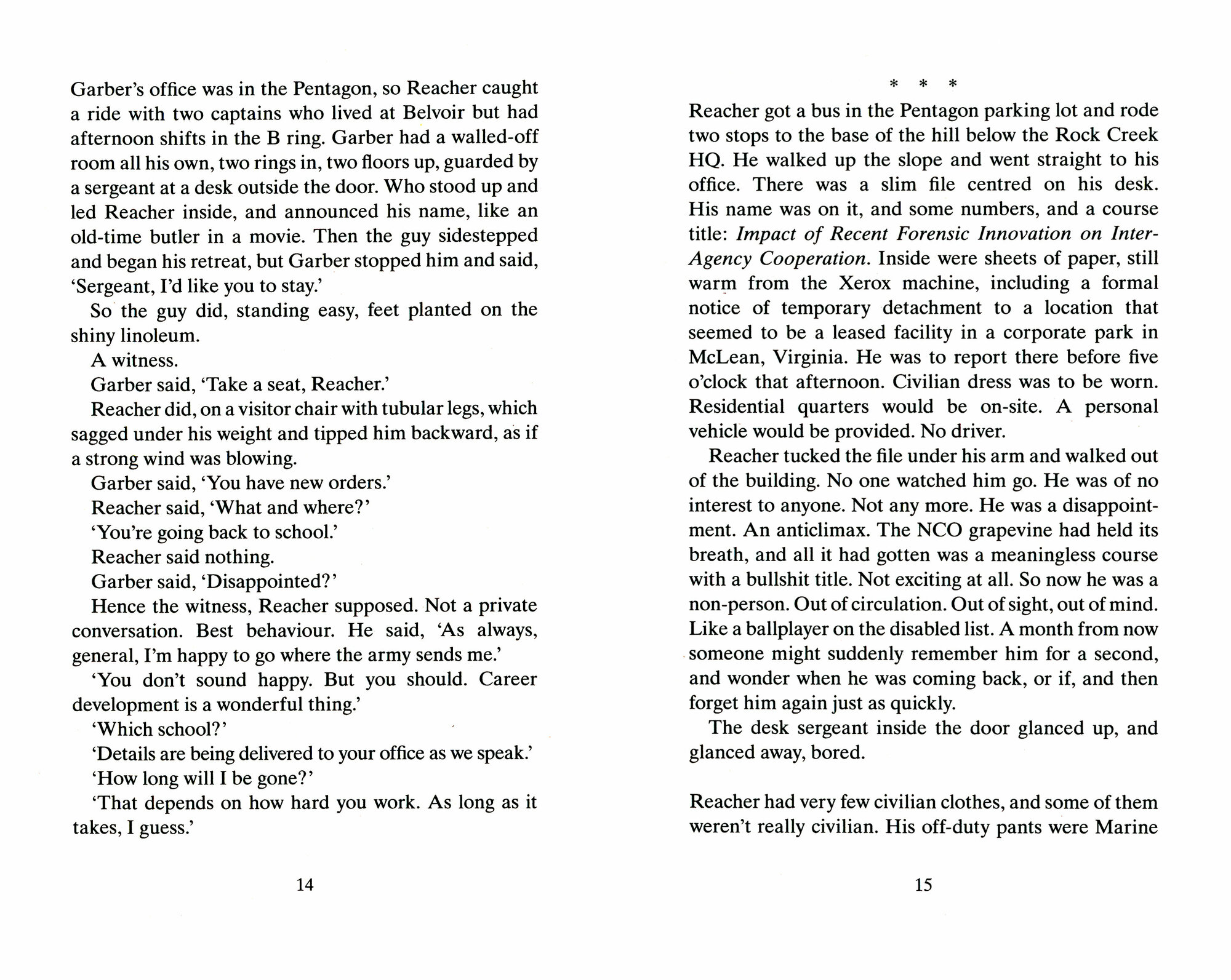 In the morning they gave Reacher a medal, and in the afternoon they sent him back to school.