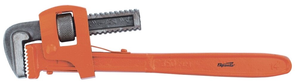 Трубный ключ Sparta - ручной инструмент, используемый при монтажных работах. Широкие губки с острыми насечками увеличивают площадь контакта, а также способствуют более прочному захвату детали.