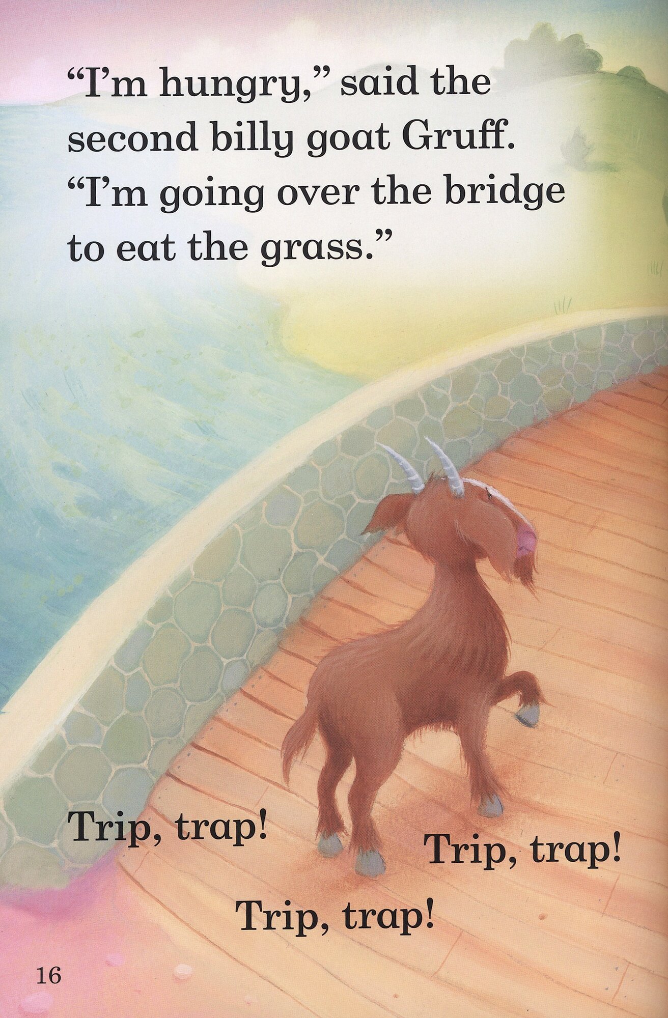 The Three Billy Goats Gruff is a Level 1 Read it yourself title, suitable for very early readers who have had some initial reading instruction and are ready to take their first steps in reading real stories. Each story is told very simply, using a small number of frequently repeated words.