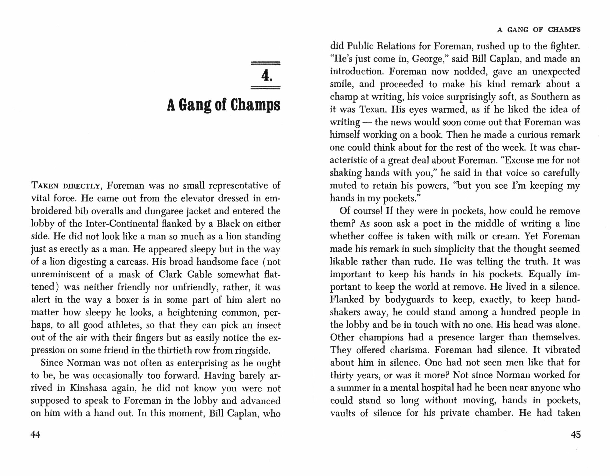 Norman Mailer's The Fight focuses on the 1974 World Heavyweight Boxing Championship in Kinshasa, Zaire. Muhammad Ali met George Foreman in the ring. Foreman's genius employed silence, serenity and cunning. He had never been defeated. His hands were his instrument, and 'he kept them in his pockets the way a hunter lays his rifle back into its velvet case'. Together the two men made boxing history in an explosive meeting of two great minds, two iron wills and monumental egos.
