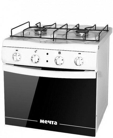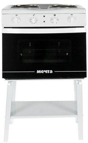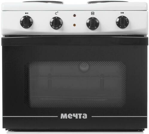 Эта небольшая плита удобный вариант для обладателей небольшой кухни, например, студентов и дачников. На варочной поверхности две одинаковые конфорки средней мощности. Духовка оснащена двумя плоскими нагревательными элементами ТЭНом сверху и снизу. Она работает в трех режимах. Элементы можно включать по отдельности или вместе. Плита Мечта оборудована четырьмя регуляторами для управления. Мощность конфорок устанавливается ступенчато, выбирается один из пяти уровней.
