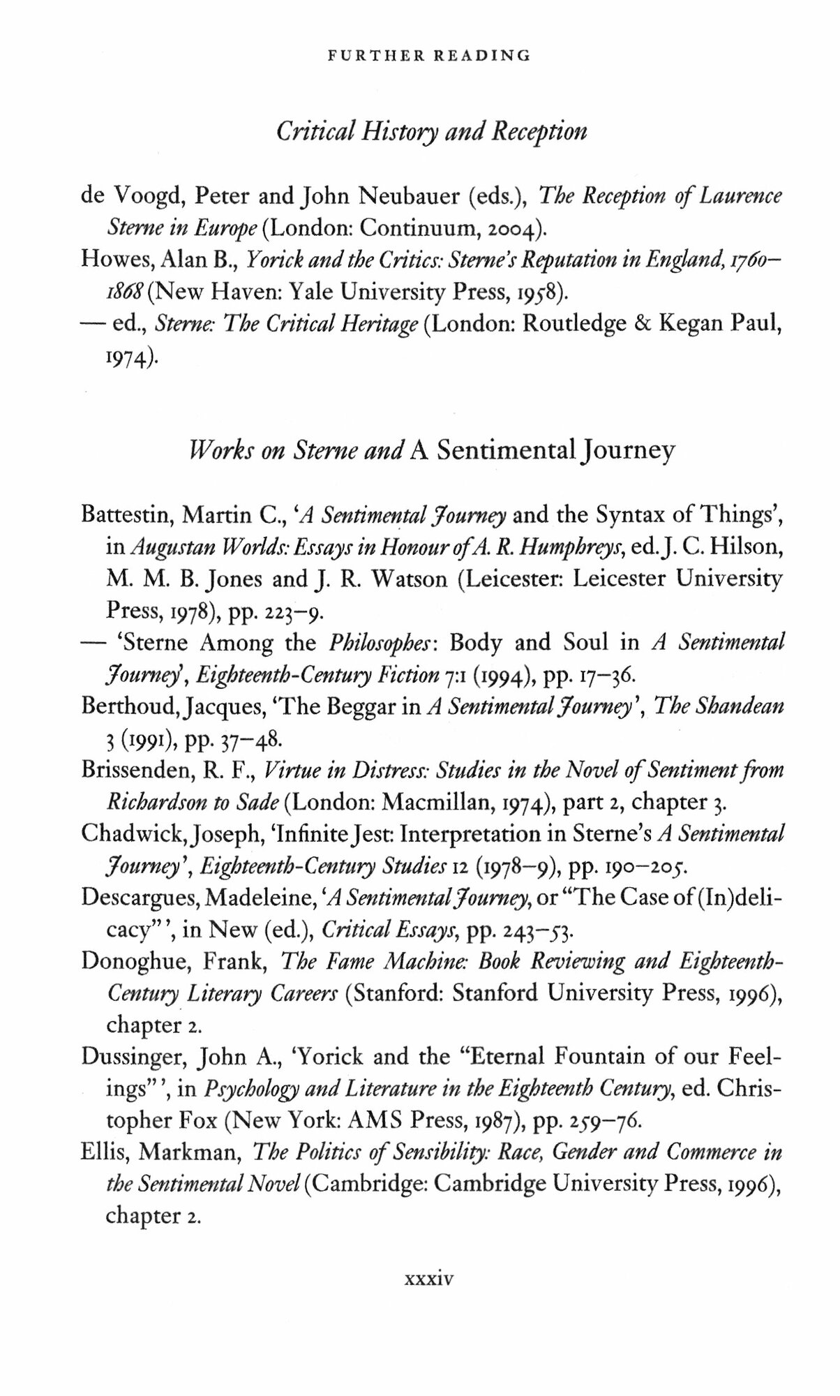 In his introduction, Paul Goring discusses Sterne's literary career and his semi-autobiographical depiction of Yorick, and sets the novel within the context of eighteenth-century travel writing and the vogue of sentimental fiction. This edition also includes a chronology, updated further reading and notes.