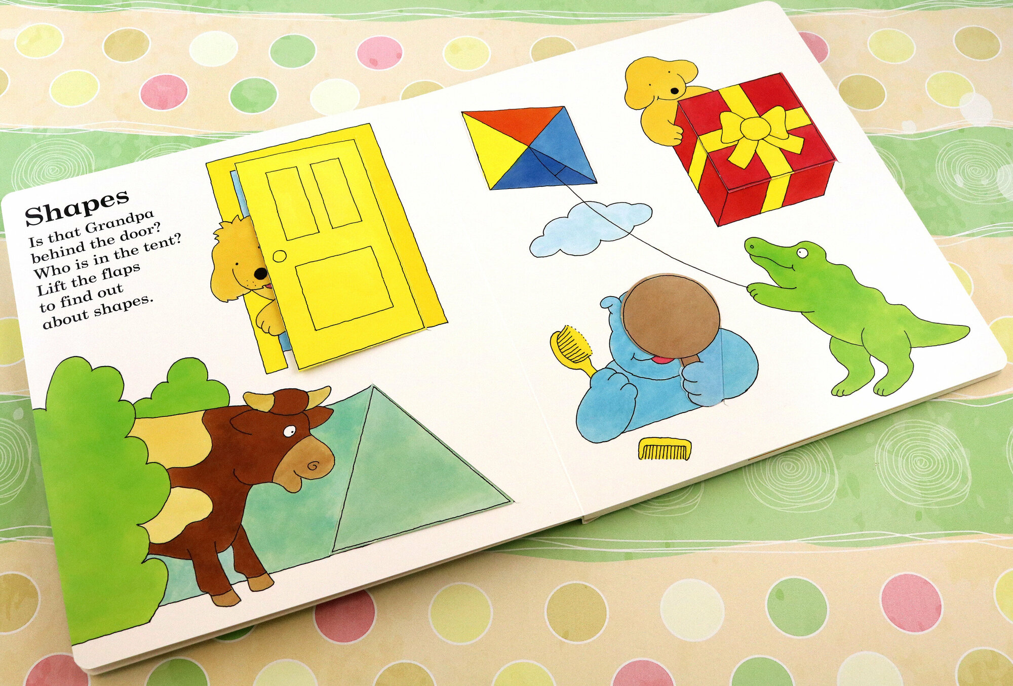 Count animals in the farmyard, search for shapes in the garden, and find colours behind each door in this playful and interactive lift-the-flap book.