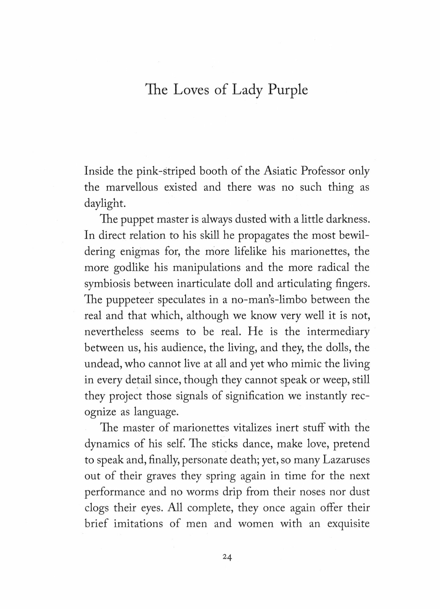 ‘I started to write short pieces when I was living in a room too small to write a novel in.’ So says Angela Carter of this collection, written during a period living in Toyko. These exotic, sensuous stories represent Carter’s first major achievement in the short story form. Lush imaginary forests, a murderous puppet show and an expressionistic vision of Japan: each one instantly conjures an atmosphere, dark and luminous in turn, and from the recognisably daring imagination of one of the great twentieth-century stylists.