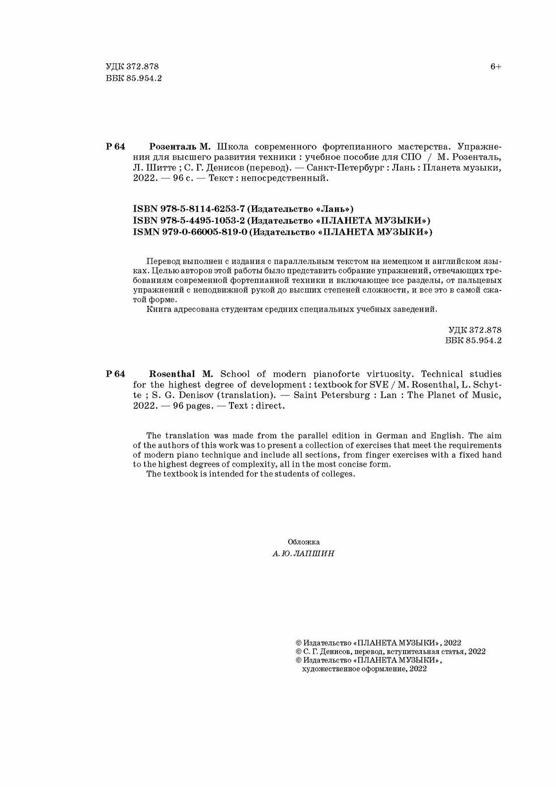 Школа современного фортепианного мастерства. Упражнения для высшего развития техники (Розенталь Мориц); Планета музыки, 2022