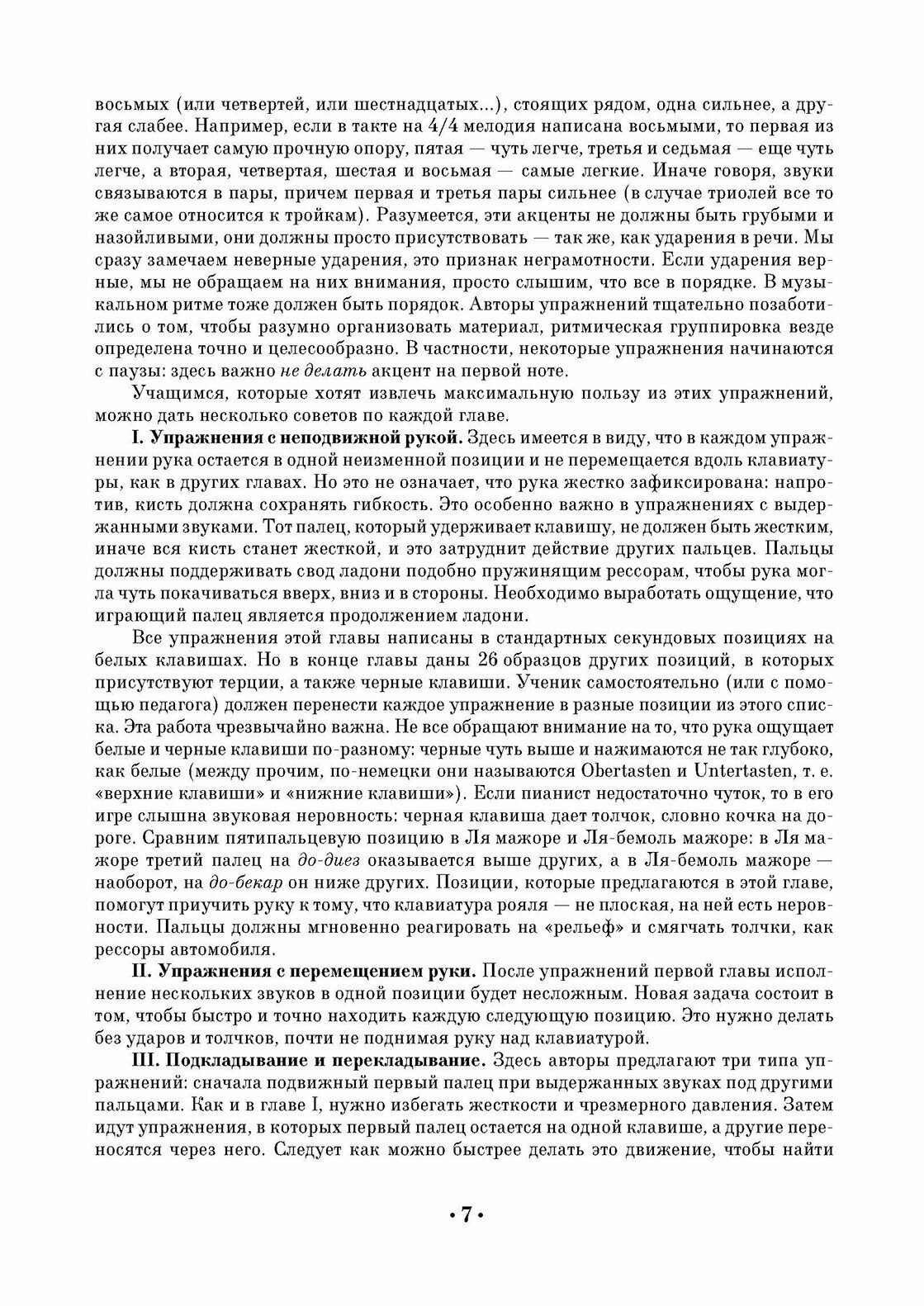 Перевод выполнен с издания с параллельным текстом на немецком и английском языках. Целью авторов этой работы было представить собрание упражнений, отвечающих требованиям современной фортепианной техники и включающее все разделы, от пальцевых упражнений с неподвижной рукой до высших степеней сложности, и все это в самой сжатой форме.