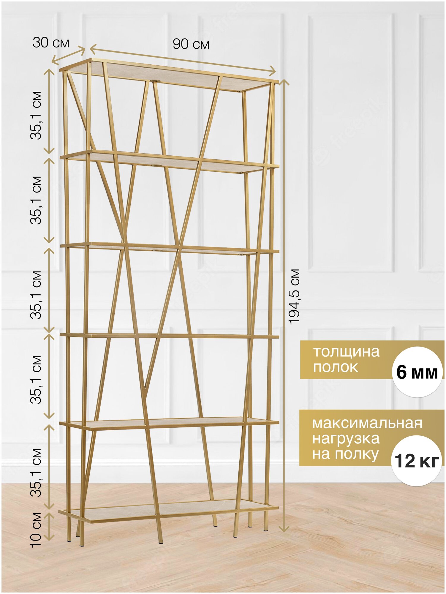 Стеллаж EVA золотой керамика Ivory 1900x900x300 Greenween