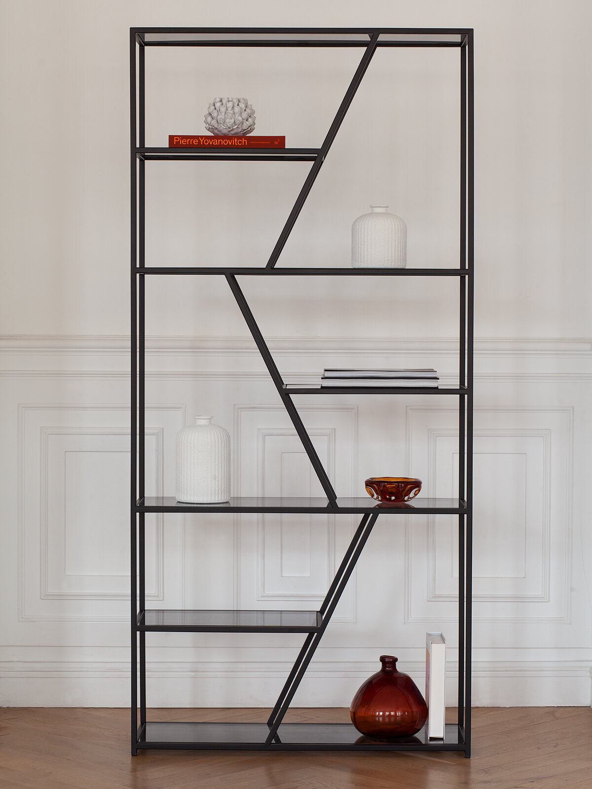 Черный стеллаж ANNET с полками из закаленного тонированного стекла привлекает внимание элегантным дизайном и функциональностью. Утонченное сочетание черного каркаса и стеклянных полок позволит разместить стеллаж в современном интерьере.