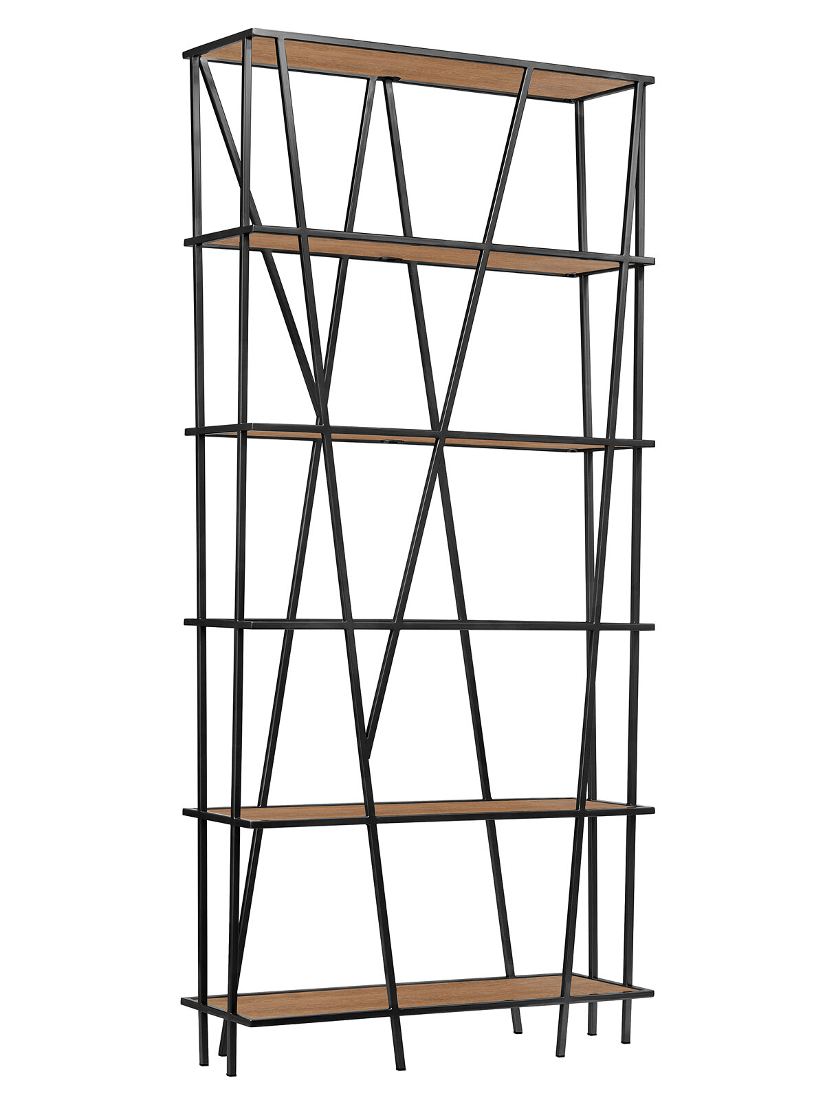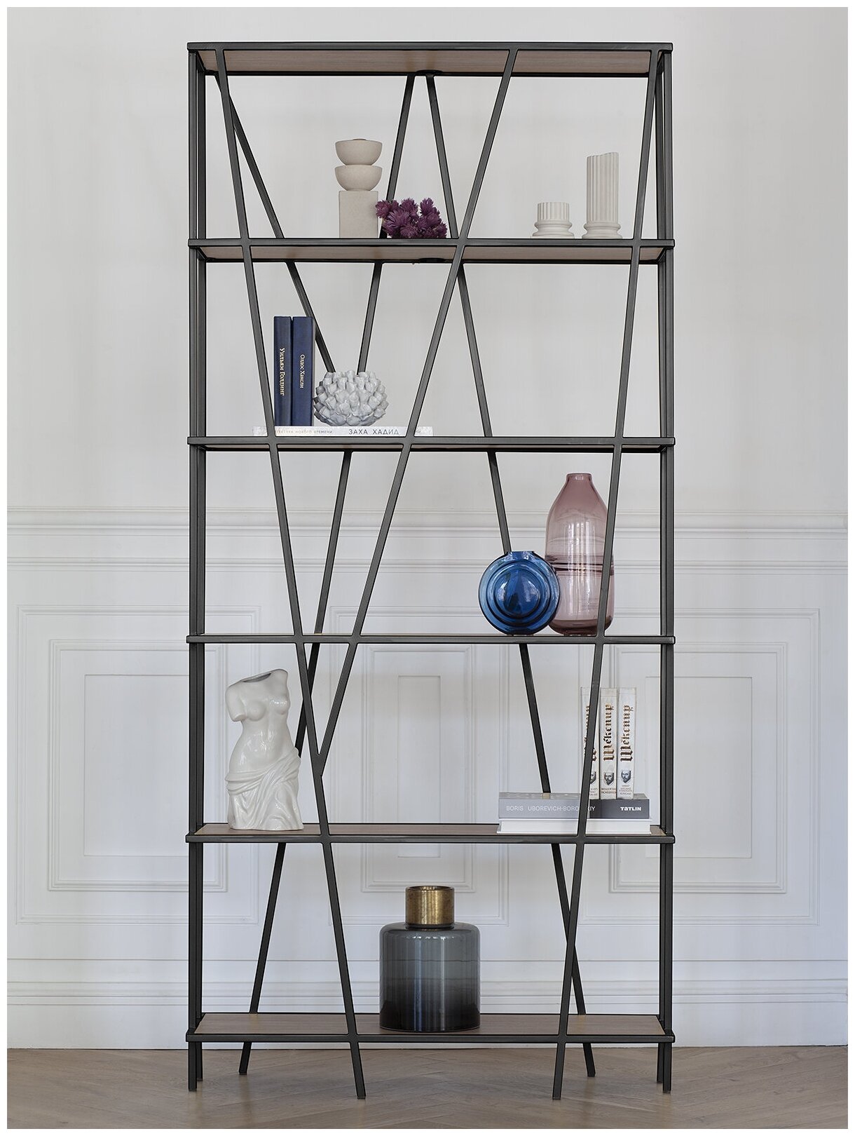 Черный стеллаж EVA с полками из ЛДСП привлекает внимание элегантным дизайном и функциональностью. Утонченное сочетание черного каркаса и деревянных полок позволит разместить стеллаж в современном интерьере.