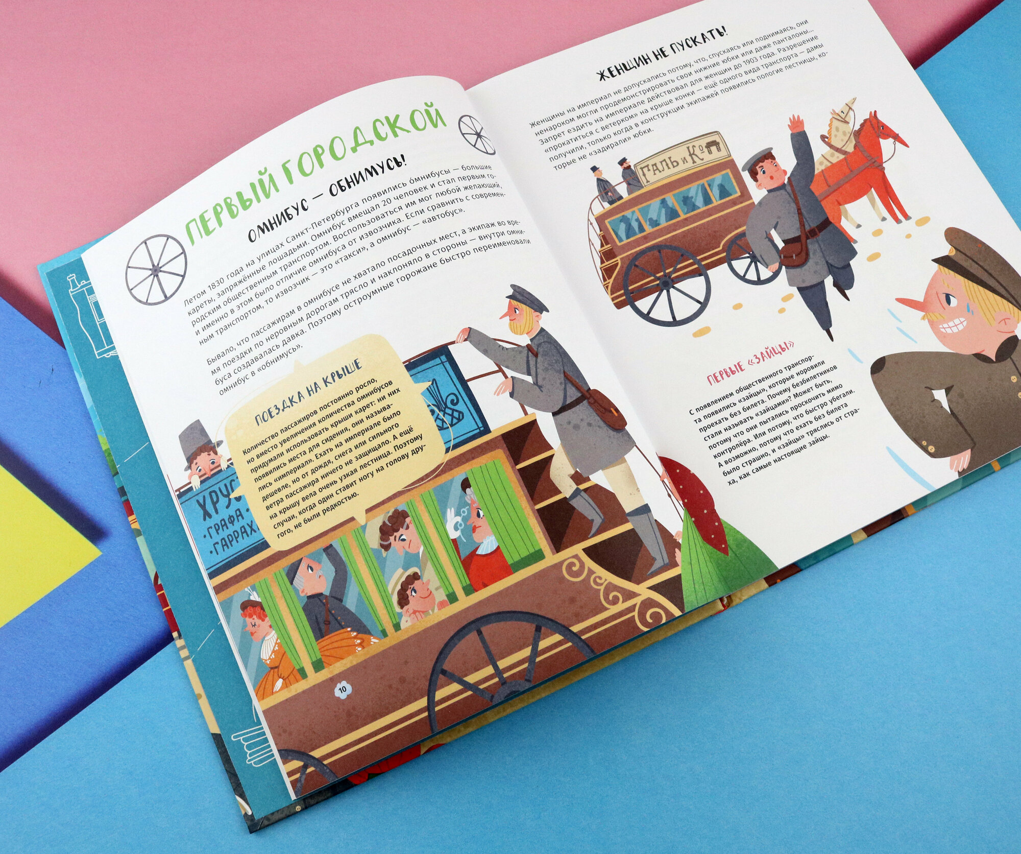 Очень нравится вся серия «Первые в России», потому что она делает акцент на том, как и где важные изобретения и открытия были сделаны или внедрены именно в нашей стране. Книга о транспорте привлекает тем, что знакомит ребенка не только с историей машин, автобусов, троллейбусов, самолетов, метро, но и других транспортных средств – такси, аэросаней, пароходов, в том числе старинных – конки, омнибусов, дирижаблей. В общем, она отлично подойдет для того, чтобы рассказать ребенку обо всем разнообразии средств передвижения. Важный плюс этого издания – книга дает не только знания про транспорт, но и расширяет знания читателя по истории России. В книге есть интересные факты о великих государственных деятелях, знаменитых инженерах, изобретателях и других интересных исторических персонажах. Язык увлекательный, написано просто и доступно, но не скупо. Иллюстрации забавные, полиграфия хорошая, бумага плотная. Красивая и интересная книга, отлично подходит и для подарка, и для библиотеки собственного ребенка ради расширения его кругозора.