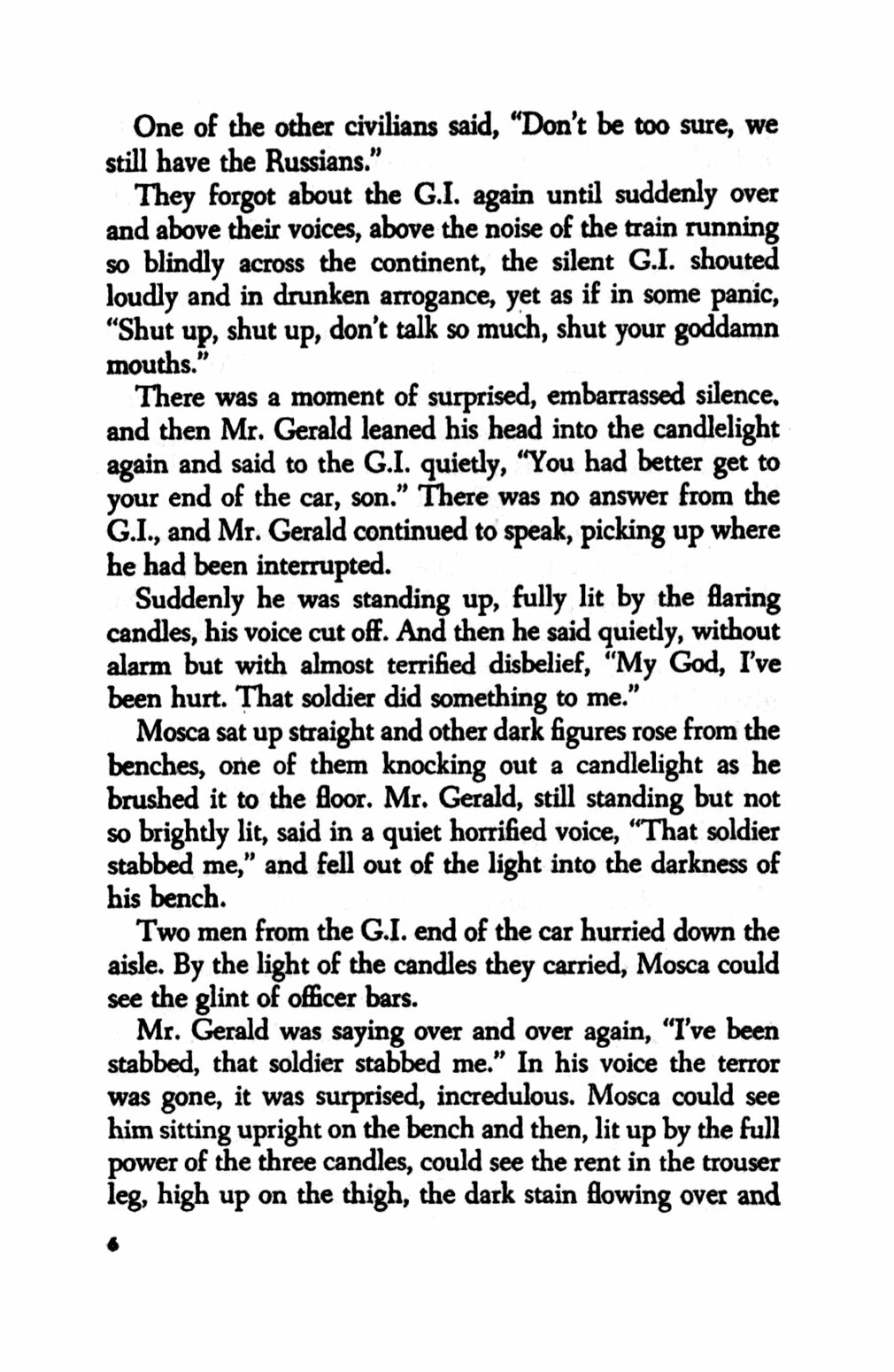 Hardened by the brutality and desceration of three long years of war, Walter Mosca returns to America a changed man. But he has no sooner arrived than he knows he must run back to the land of the enemy, to find the woman who accepts the rage and cruelty of the world around her.
