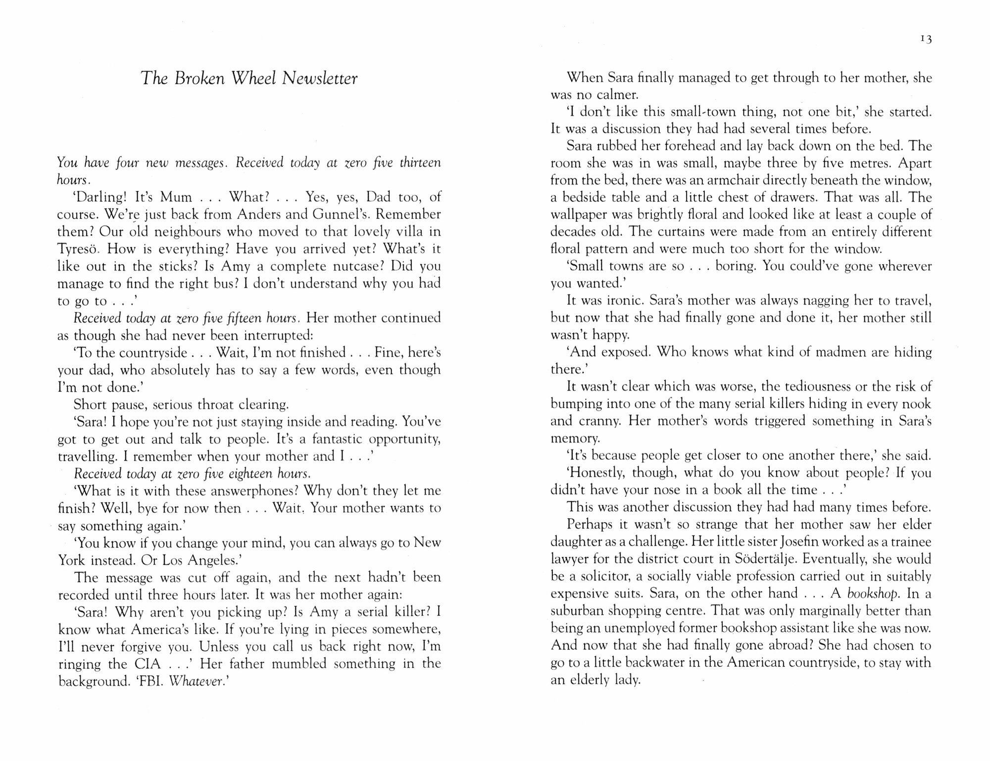 Sara has never left Sweden but at the age of 28 she decides it’s time. She cashes in her savings, packs a suitcase full of books and sets off for Broken Wheel, Iowa, a town where she knows nobody.