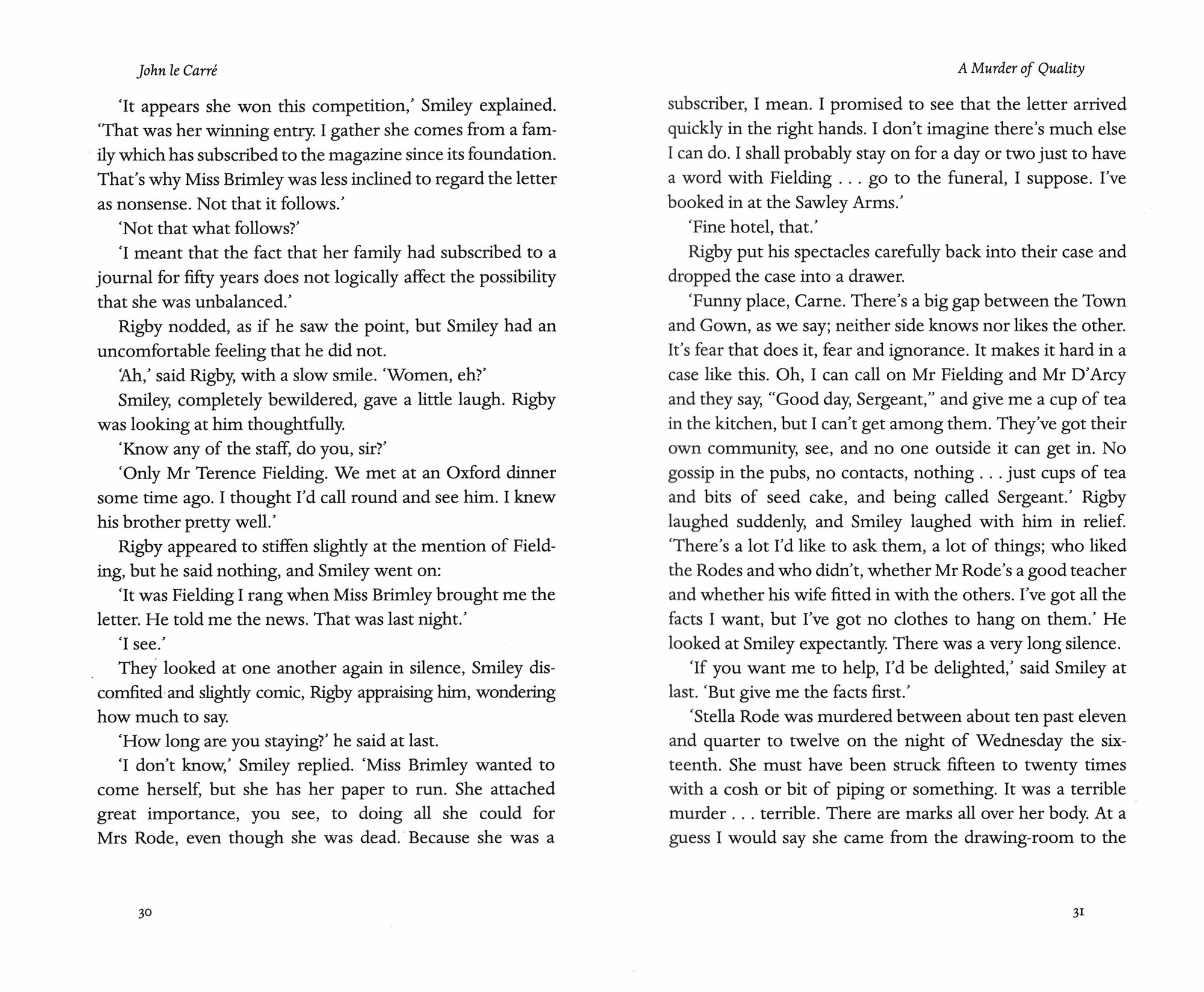 Stella Rode has twice disturbed the ancient cloisters of Carne School: firstly by being the wrong sort, with her doilies and china ducks, and secondly by being murdered. George Smiley, who has his own connection with the school, is asked by an old Service friend to investigate. Smiley knows that Stella feared her husband would murder her, but as he probes further beneath Carne's respectable veneer, he uncovers far more than a simple crime of passion. In his second George Smiley novel, le Carre moves outside the world of espionage to reveal the secrets at the heart of another particularly English institution. The result is a pitch-perfect murder mystery, with Smiley as master detective.