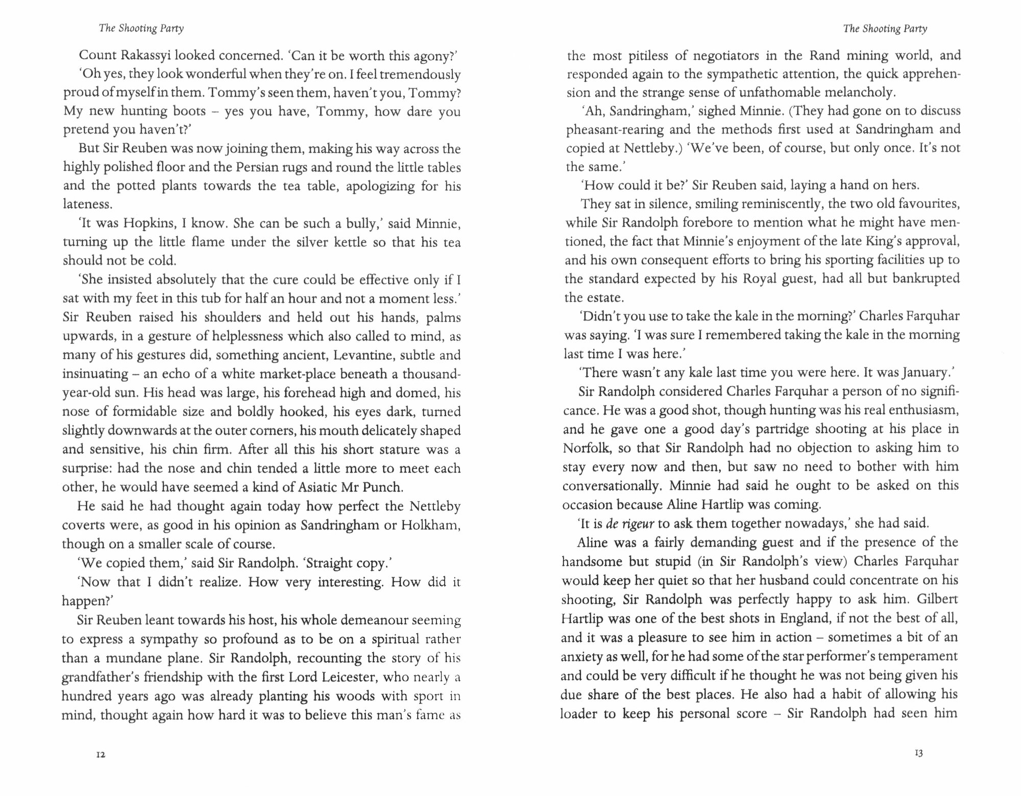 It is 1913 - a breath away from the Great War - and Edwardian England is about to vanish into history. An assorted group of men and women gather at Sir Randolph Nettleby's estate for a shooting party. Opulent, adulterous, moving assuredly through the rituals of eating and slaughter, they are an era's dazzlingly obtuse and brilliantly decorative finale.