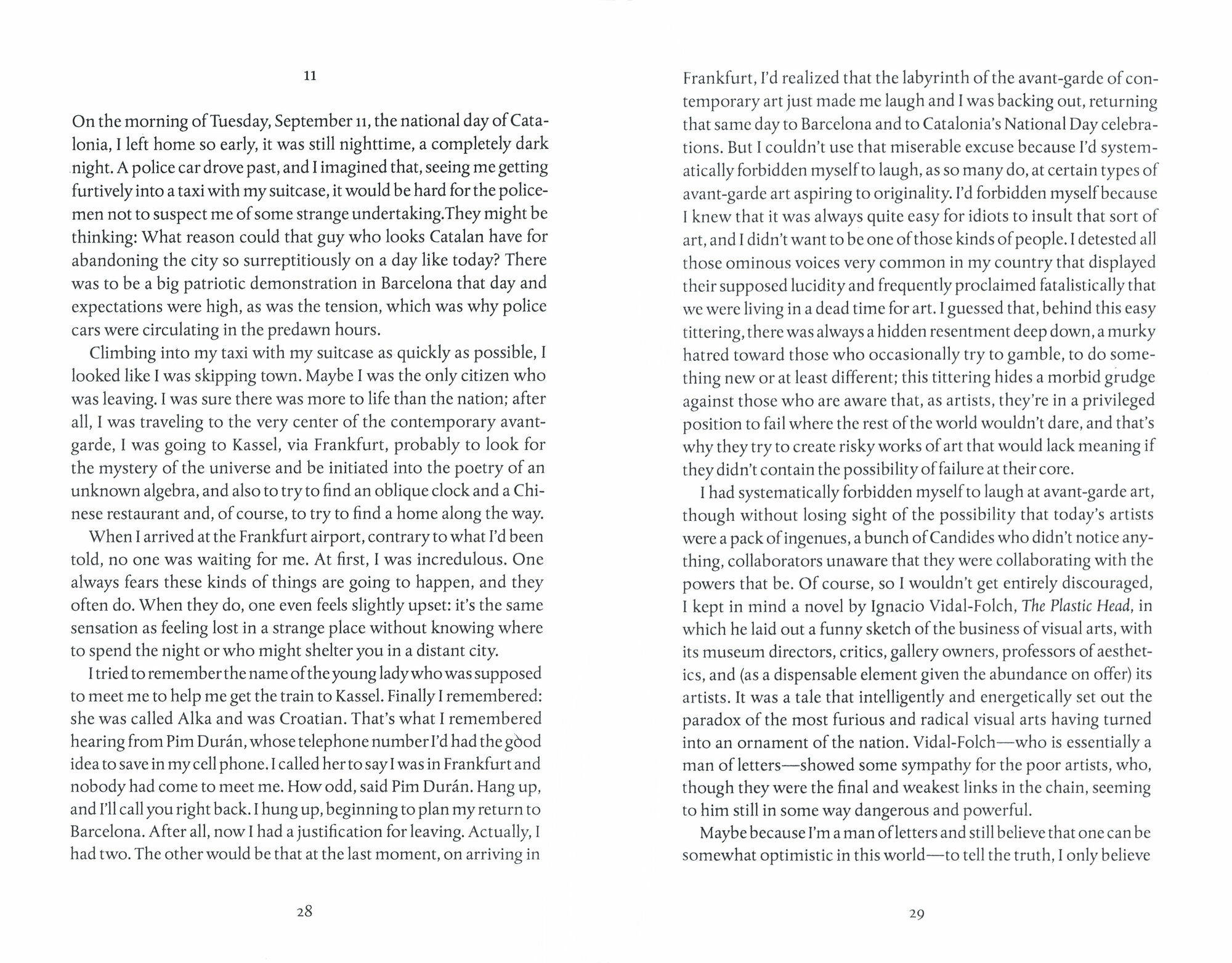 Once in Kassel, the writer is surprised to find himself overcome by good cheer. As he strolls through the city, spurred on by his spontaneous, quirky response to art, he begins to make sense of the wonders that surround him.