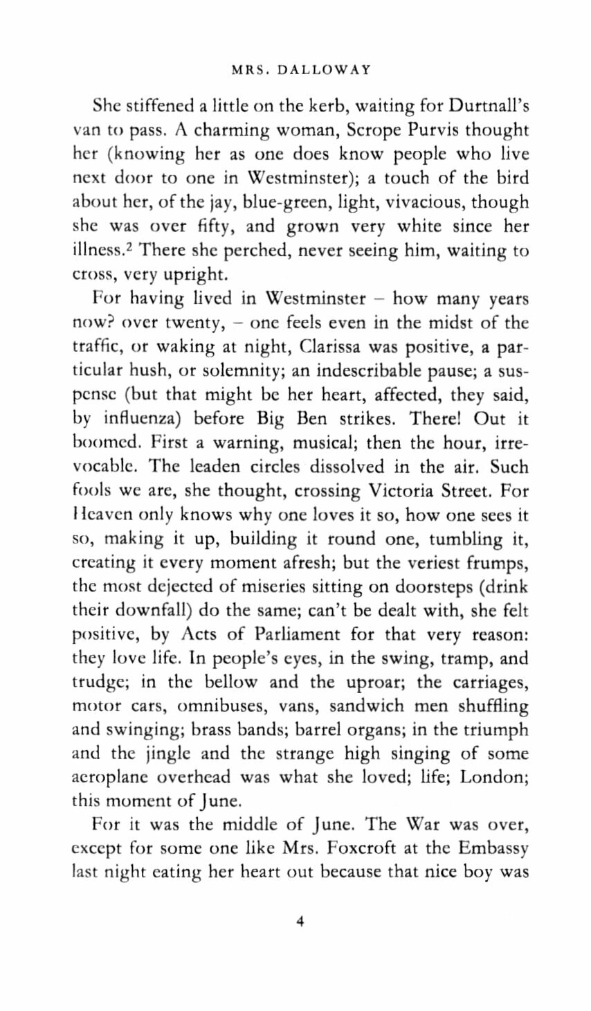 Clarissa Dalloway, elegant and vivacious, is preparing for a party and remembering those she once loved. In another part of London, Septimus Warren Smith is suffering from shell-shock and on the brink of madness. Smith's day interweaves with that of Clarissa and her friends, their lives converging as the party reaches its glittering climax. Virginia Woolf's masterly novel, in which she perfected the interior monologue, brings past, present and future together on one momentous day in June 1923.