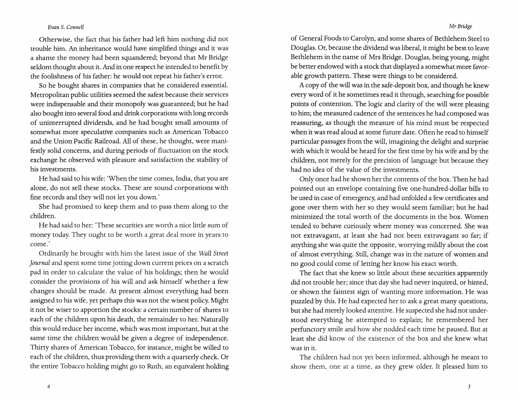 The companion novel, Mrs Bridge, telling the story from the other side of the marriage, is published in Penguin Modern Classics.