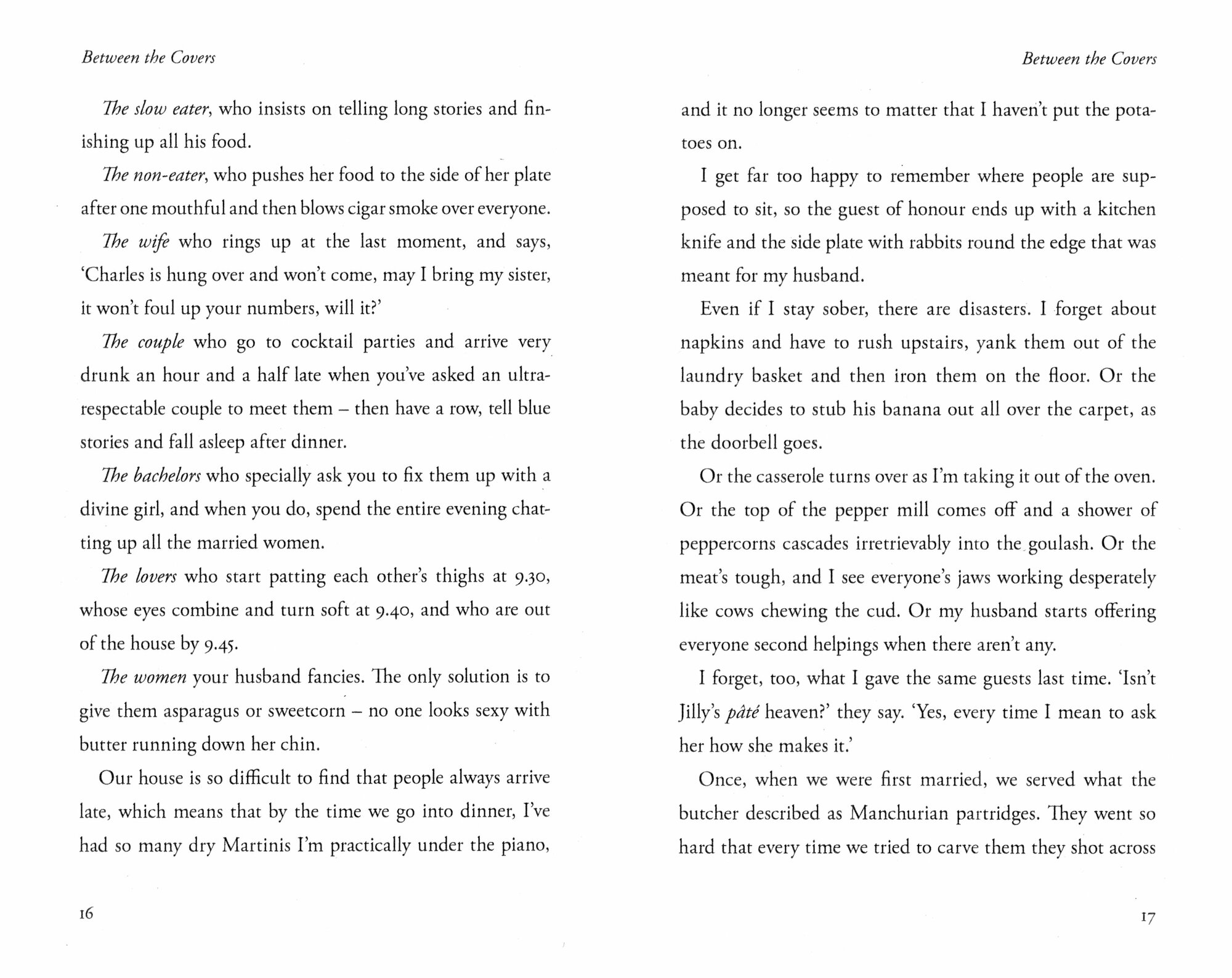 Jilly Cooper's observations from her days as a much-loved newspaper columnist cover everything to do with sex, socialising and survival - from marriage, friendship and the minutiae of family life, to the tedium of going to visit people for the weekend, the stress of hosting dinner parties and the descent of middle age.