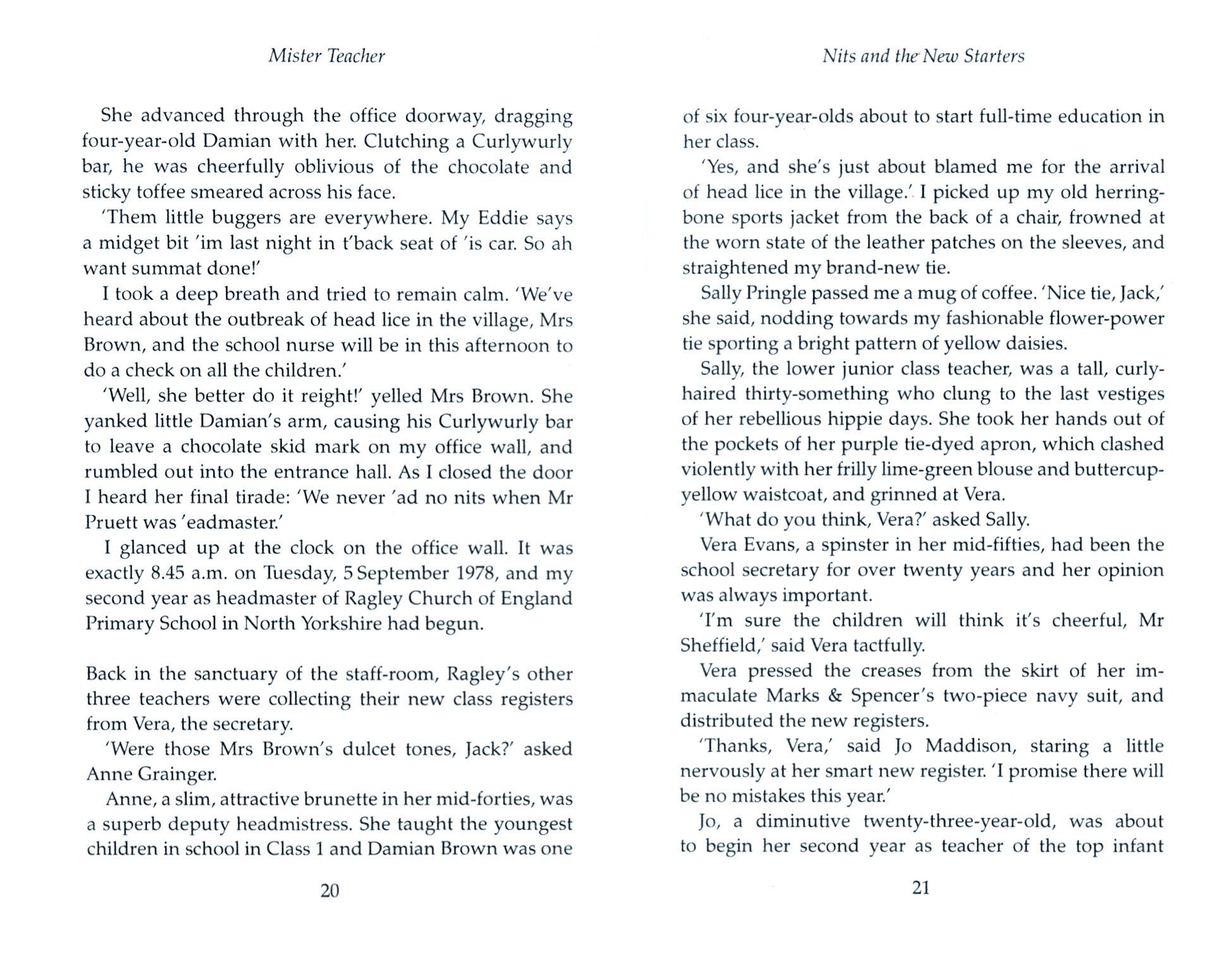 There's a colourful cast of characters who accompany Jack through the ups and downs of the school year including Vera, the school secretary who worships Margaret Thatcher and whose greatest ambition is to become President of the Women's Institute; Ruby, the 20-stone caretaker who sings like Julie Andrews; and Dorothy, the coffee shop assistant who is desperate to be Wonder Woman. Most of all, there is the lovely Beth Henderson, a teacher from a nearby school, who with her sister Laura presents Jack with an unexpected dilemma ...