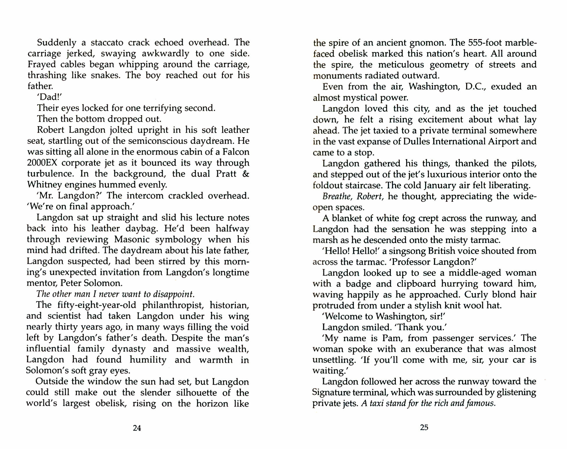The Capitol Building, Washington DC: Harvard symbologist Robert Langdon believes he is here to give a lecture. He is wrong. Within minutes of his arrival, a shocking object is discovered. It is a gruesome invitation into an ancient world of hidden wisdom.