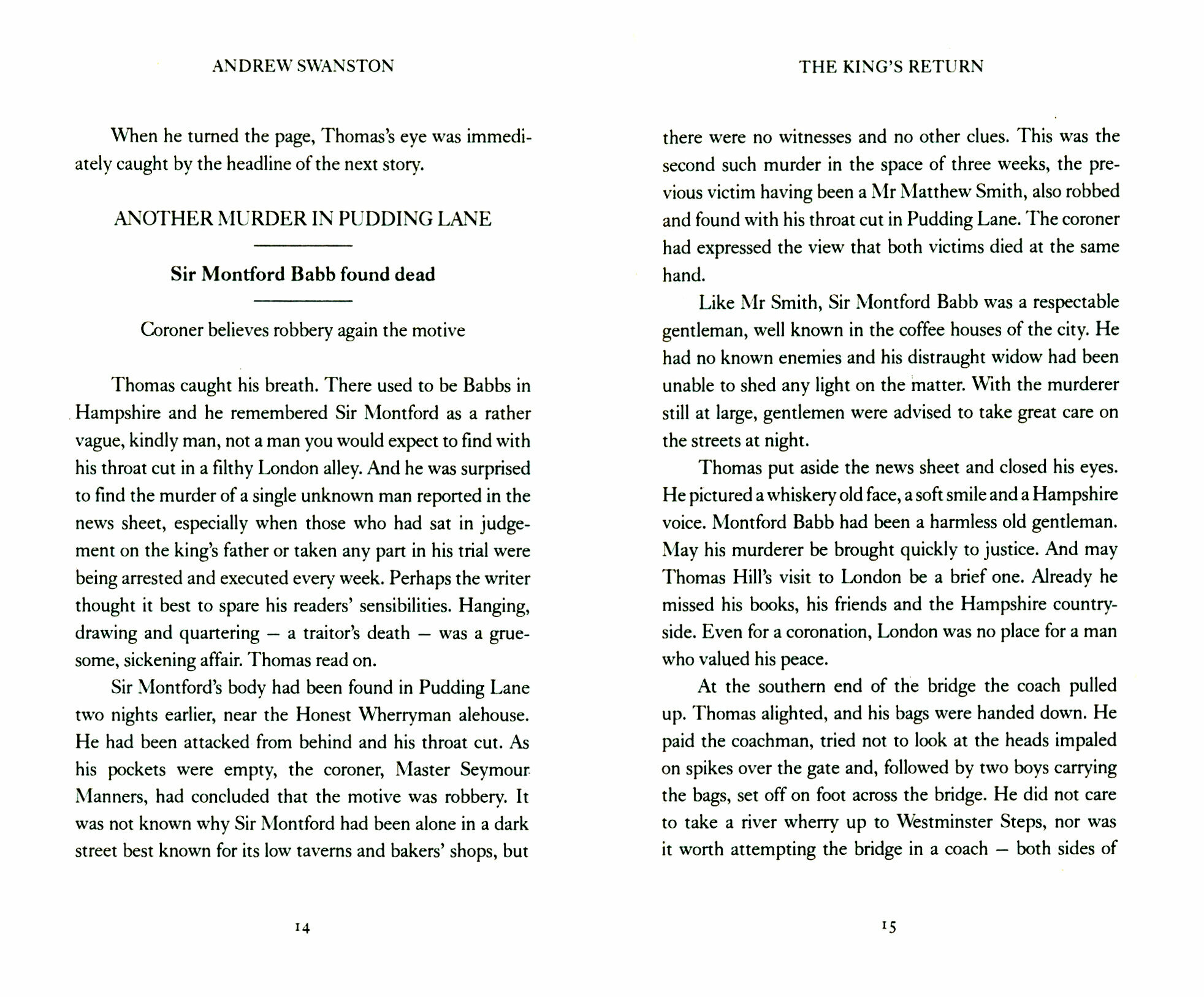 But when two respectable gentlemen are found in a foul lane with their throats cut, it becomes apparent that England’s enemies are using the newly re-established post office for their own ends. There are traitors at work and plans to overthrow the king. Another war is possible.