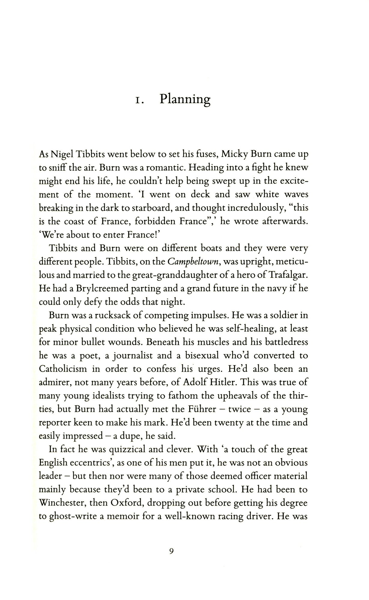 Drawing on official documents, interviews, unknown accounts and the astonished reactions of French civilians and German forces, The Greatest Raid recreates in cinematic detail the hours in which the "Charioteers" fought and died, from Lt Gerard Brett, the curator at the V & A, to "Bertie" Burtinshaw, who went into battle humming There'll Always be an England, and from Lt Stuart Chant, who set the fuses with 90 seconds to escape, to the epic solo reconnaissance of the legendary Times journalist Capt Micky Burn.
