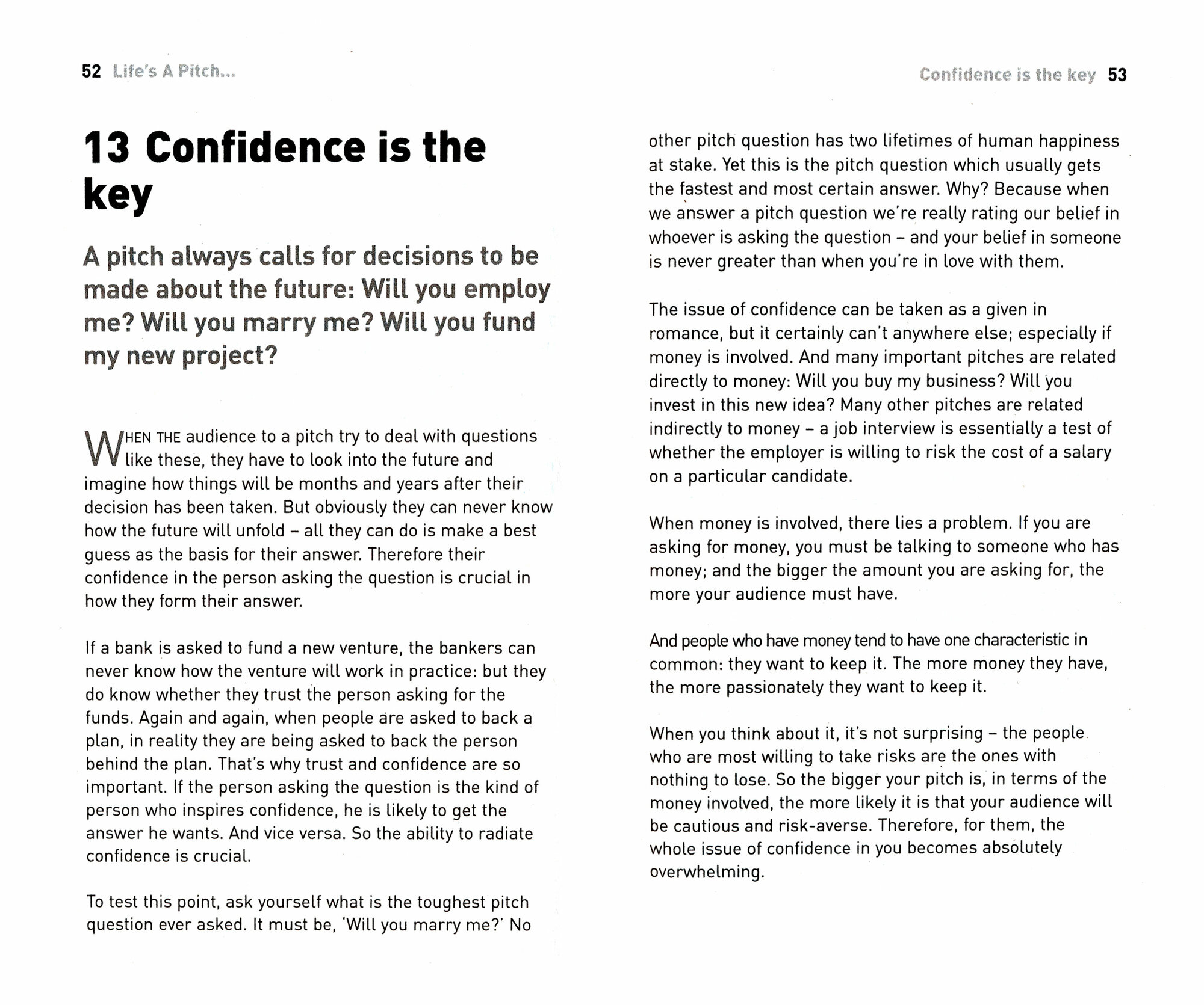 However the skills of the pitch are not only relevant to the world of business, rather they apply to just about every significant personal transaction in your life...