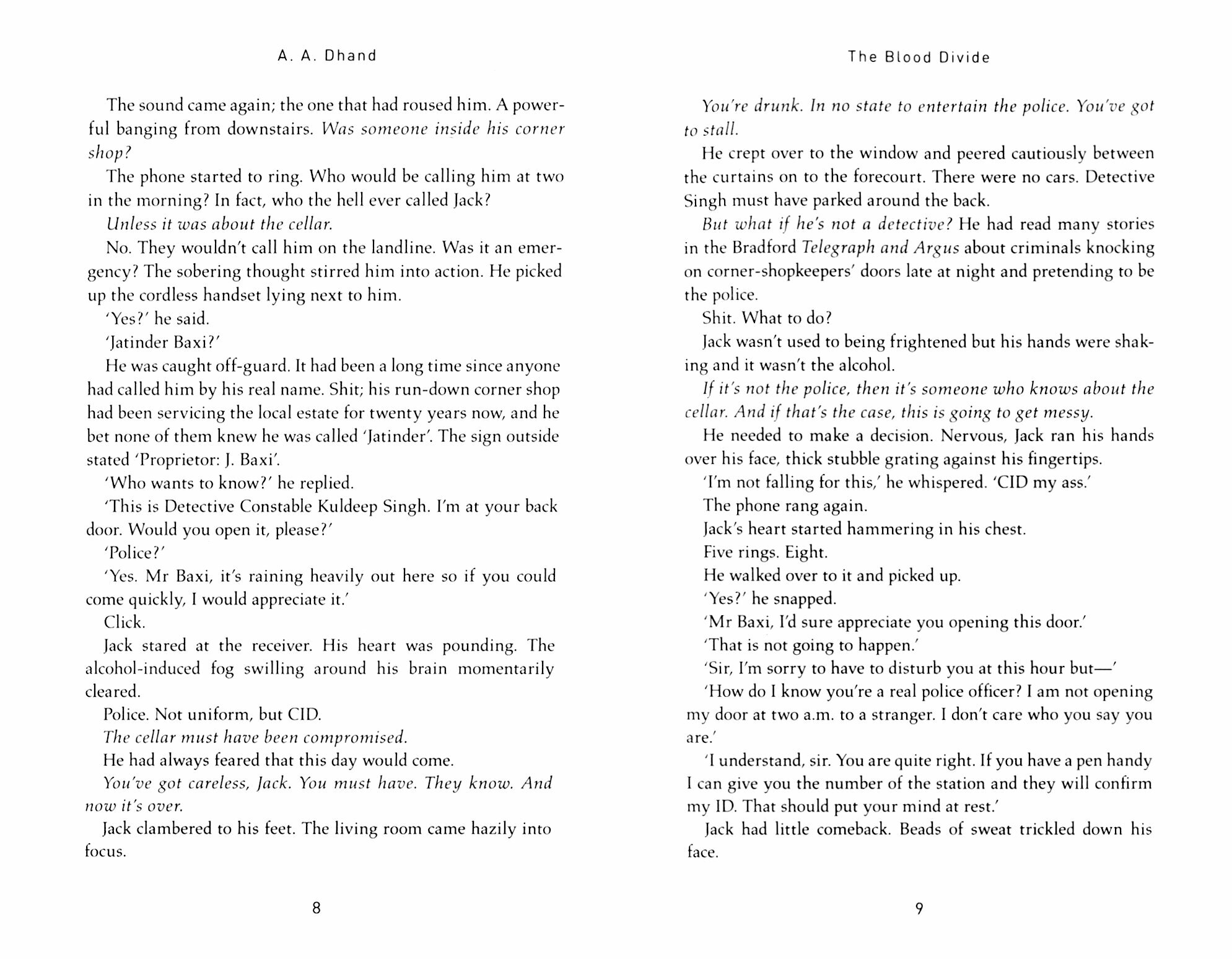 Now, running for their lives, Jack and Aisha frantically try to discover why the detective was so convinced they both have information on a missing person. Jack is a Sikh corner shopkeeper with a criminal record. Aisha is a Muslim medical student from a wealthy family. What could possibly connect them?