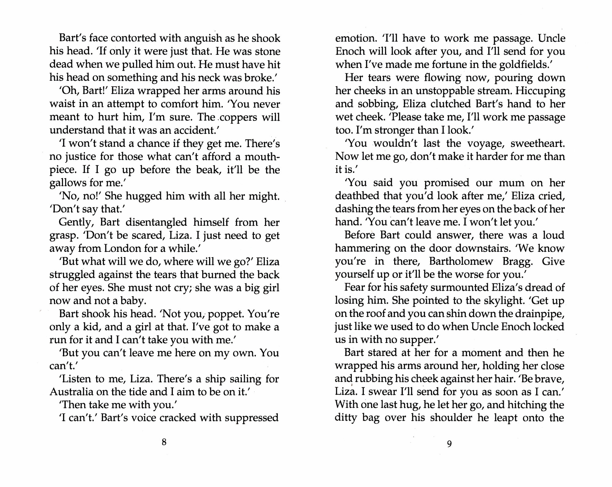 Twelve-year-old Eliza Bragg has known little in life but the cold, comfortless banks of the Thames. Living above her uncle's chandlery she has grown accustomed to a life of penury and servitude, her only comfort the love and protection of her older brother, Bart.