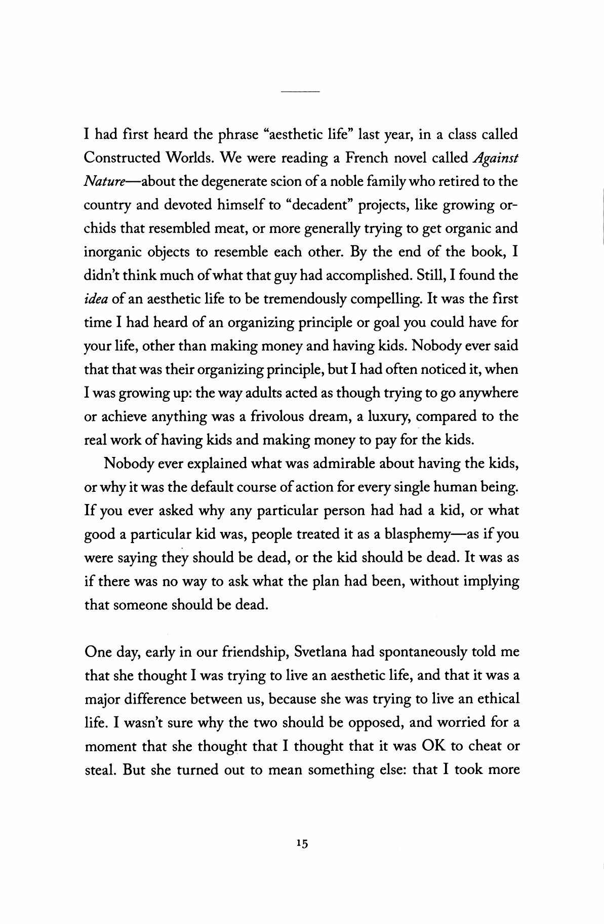 On the plus side, her life feels like the plot of an exciting novel. On the other hand, why do so many novels have crazy, abandoned women in them? How does one live a life as interesting as a novel-a life worthy of becoming a novel-without becoming a crazy, abandoned woman oneself?