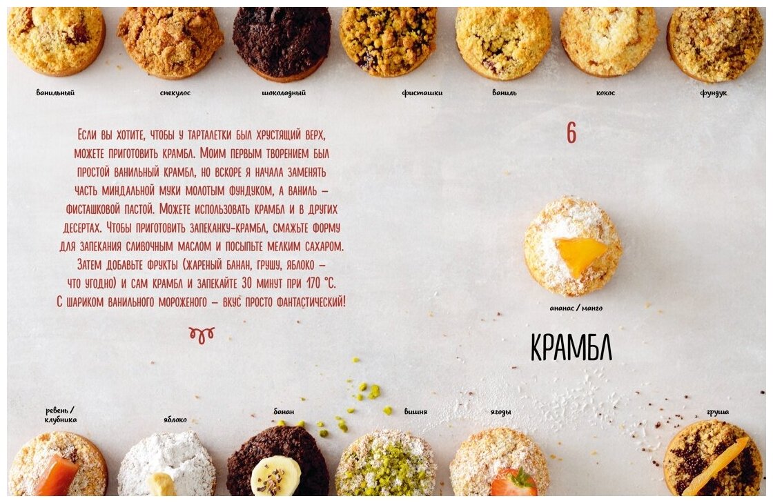 Мейке Схалинг, основатель Petit gateau, одной из самых популярных кондитерских Амстердама, раскрывает секреты приготовления безупречных сладких тарталеток. Освоив базовые идеи и принципы их создания, вы сможете варьировать сочетания вкусов до бесконечности. Возьмите рассыпчатое песочное тесто, добавьте одну из нежных начинок (Лимонный, миндальный, или заварной крем? Клафути? А может, карамель или ганаш?), потом – немного фруктов или ягод (свежих или припущенных, запеченных или карамелизованных) и, наконец, украсьте в соответствии со своими симпатиями, например крамблом, орехами или шоколадом… Вуаля, роскошная тарталетка готова!