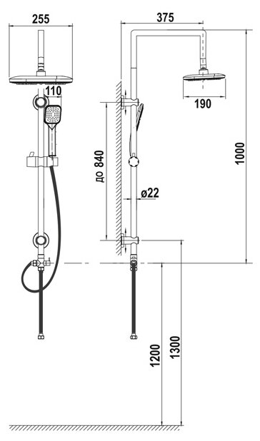 | Комплект поставки | штанга, ручной душ, верхний душ |