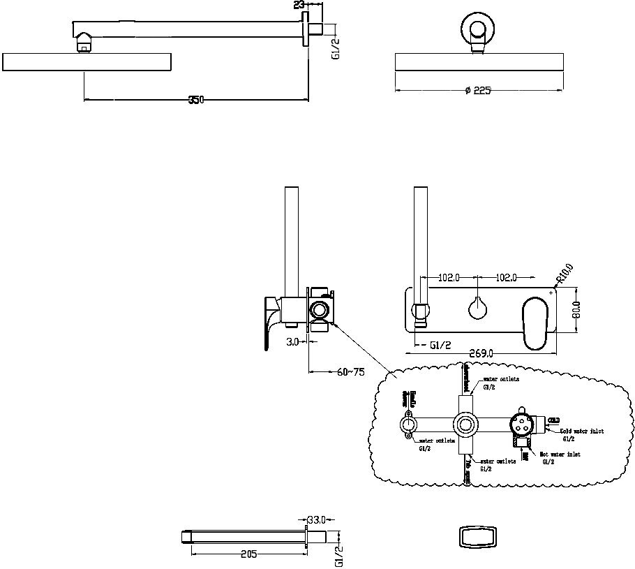| Габариты верхнего душа | 225 |